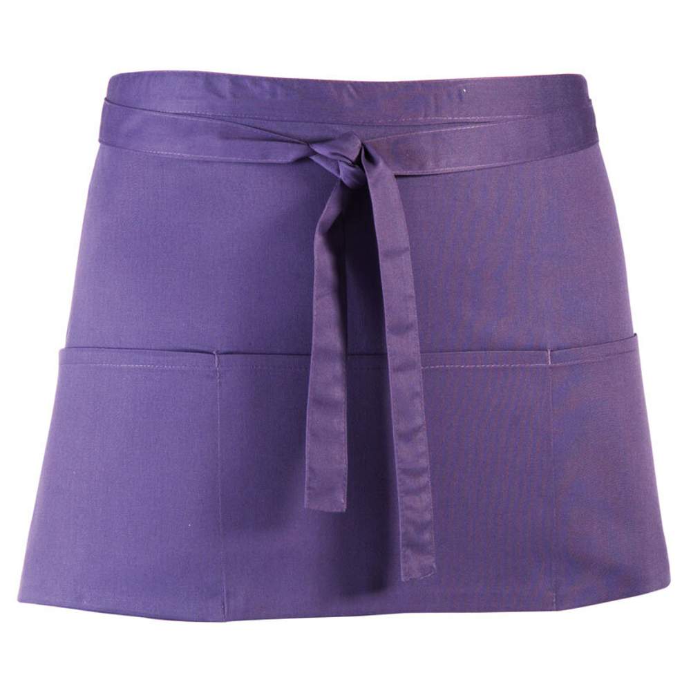 Ten krótki fartuch ma trzy otwarte kieszenie i jest dostępny w szerokiej gamie kolorów. Kieszenie są idealne do przenoszenia terminali płatniczych i tabletów. Wstążka zapięcia w ciągłości tkaniny o długości 90 cm. Szerokość 60 cm, Długość 33 cm. Skład: 65% poliestru, 35% bawełny (z wyjątkiem koloru denim: 70% bawełny, 30% poliesteru twill). Ten fartuch można spersonalizować poprzez haftowanie, co pozwala dodać logo lub wizualne elementy dla jasnej identyfikacji marki.
