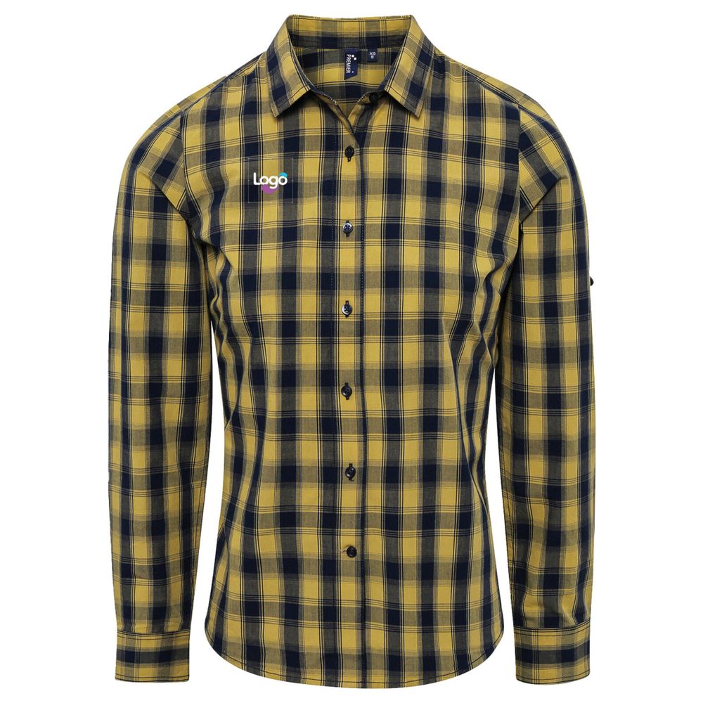 PR350 - Koszula z bawełny w kariaty pr350 personalizacja - camel/navy