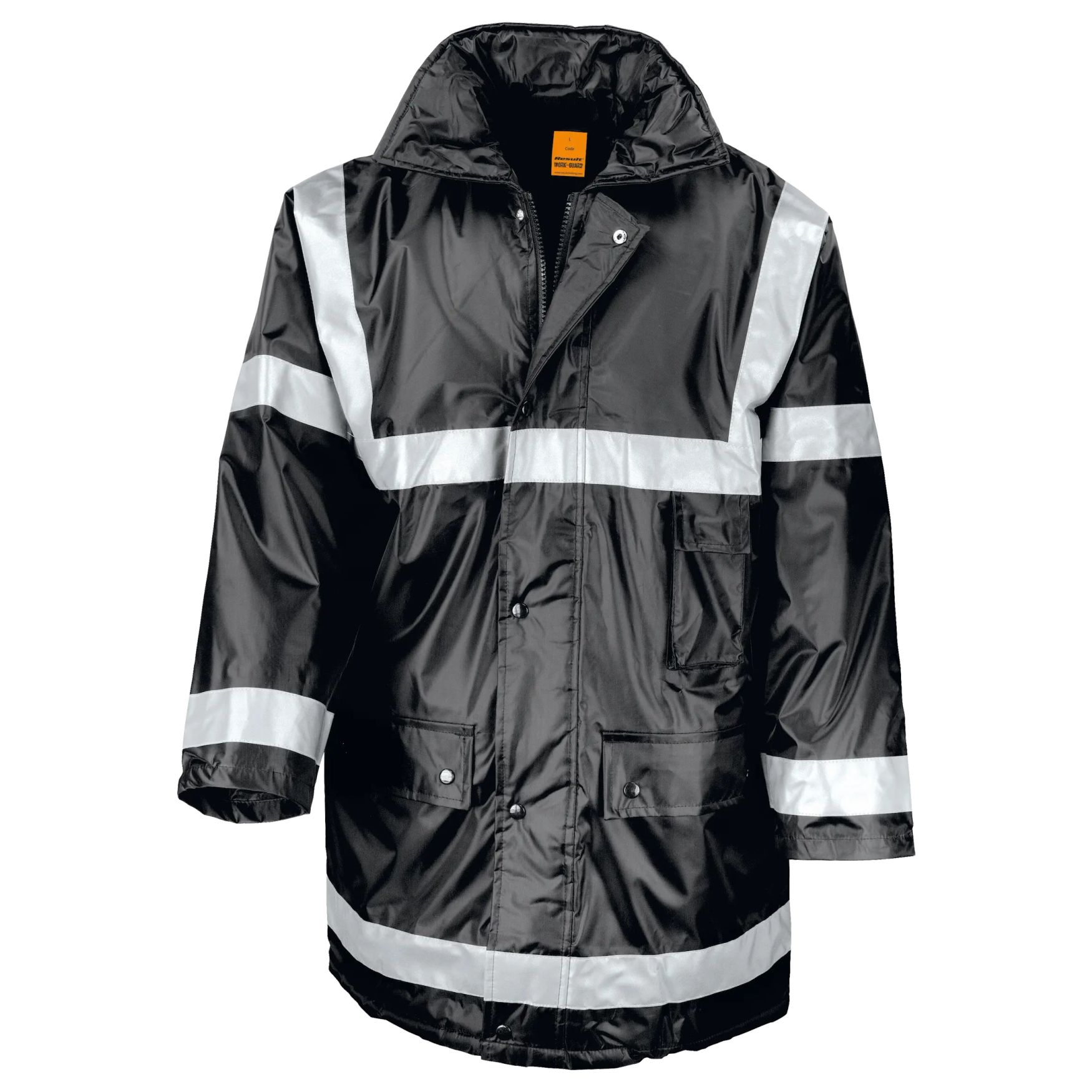 Ta kurtka bezpieczeństwa została zaprojektowana w celu zwiększenia widoczności w warunkach słabego oświetlenia. Jest wykonana z nylonu pokrytym PVC dla zwiększonej odporności. Futer z poliestru zapewnia dodatkowy komfort. Kurtka jest wyposażona w dwie duże zewnętrzne kieszenie z klamrą i jedną kieszen wewnętrzną. Wkładana kaptur chroni przed złą pogodą. Taśmy odblaskowe 3M, umieszczone z przodu i z tyłu, znacznie poprawiają widoczność. Szwy wodoodporne zapewniają dodatkową ochronę przed wilgocią.