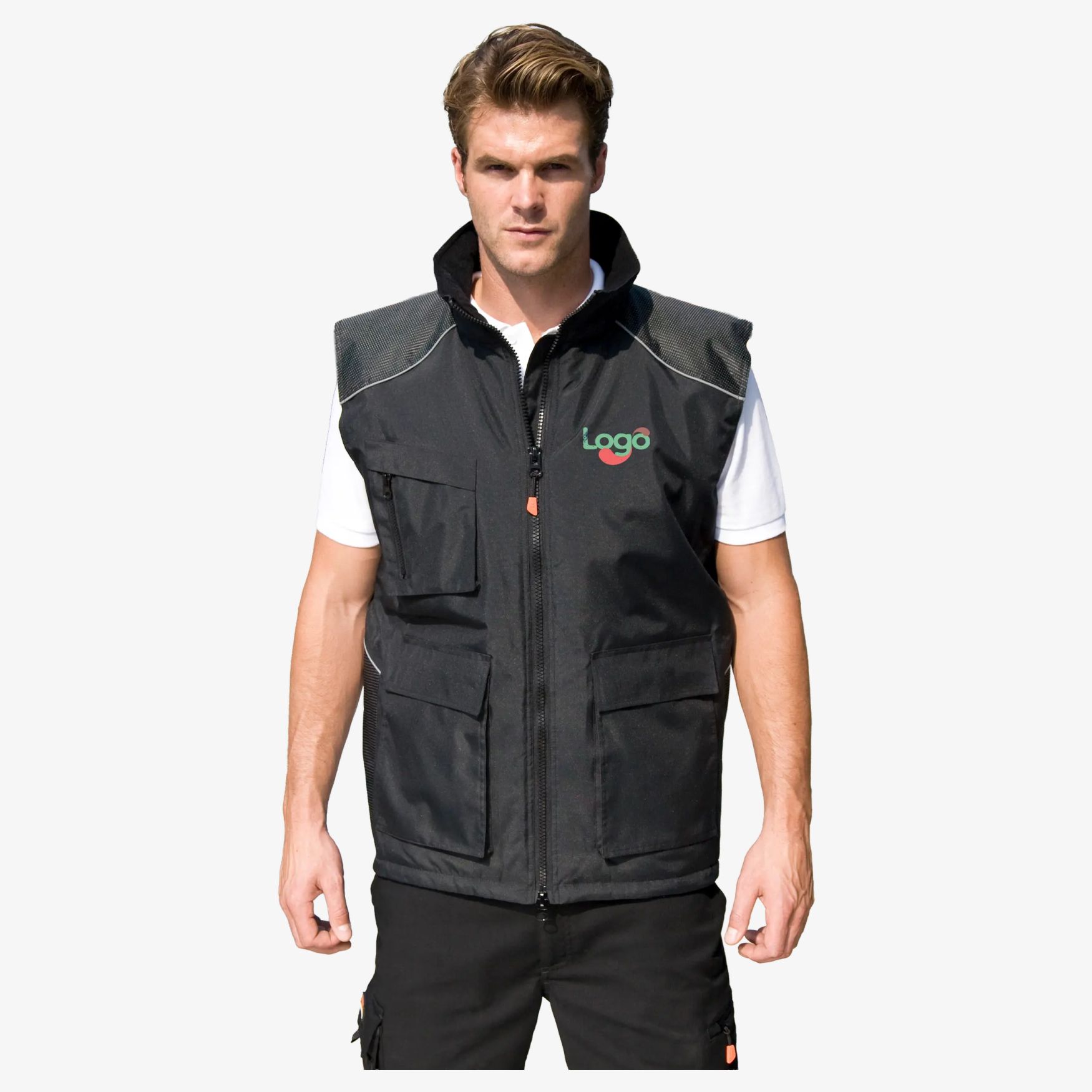 Vostex Bodywarmer to długi bezrękawnik, wodoodporny 2000 mm i wiatroszczelny, ze zgrzewanymi szwami. Luźny krój, odpowiedni do noszenia na innych ubraniach. Przednie kieszenie z zapięciem na rzep, kieszenie do ogrzewania dłoni, kieszenie na piersi oraz wewnętrzna. Dół regulowany ściągaczem oraz odblaskowa lamówka. Możliwość personalizacji.