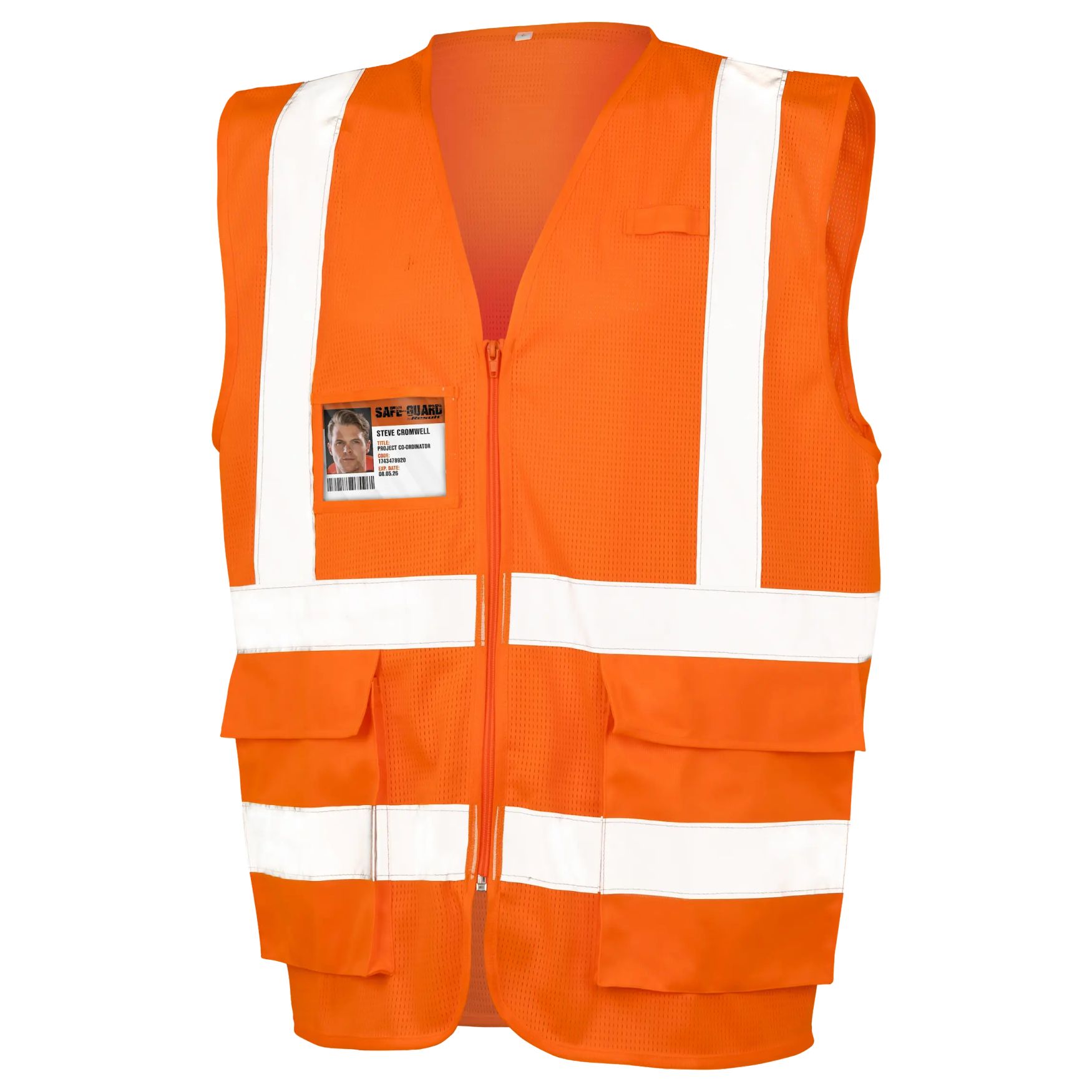 Kamizelka odblaskowa z siatki to kamizelka ochronna z przewiewnej siatki, z luźnym krojem, kieszenią na piersi z miejscem na identyfikator oraz kieszeniami bocznymi. Taśmy odblaskowe 50 mm na tułowiu i ramionach, zapięcie na zamek i uchwyt na radio.