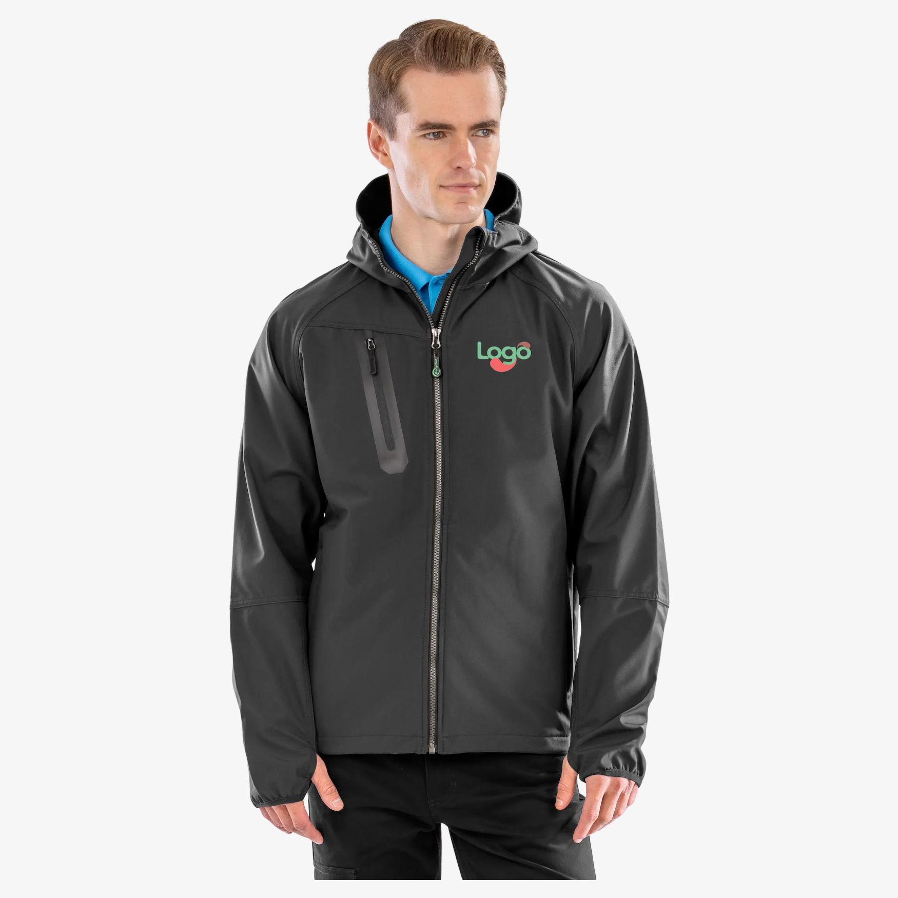 Recyklingowany Softshell 3-warstwowy to uniseksowa kurtka z zintegrowanym kapturem o lekkim kroju. Konstrukcja 3-warstwowa łączy ochronę przed wiatrem i wodą z deklarowaną oddychalnością. Przednie zapięcie na zamek z wewnętrzną listwą ochronną i osłoną podbródka, elastyczne mankiety z otworem na kciuk, wydłużony tył. Do personalizacji.