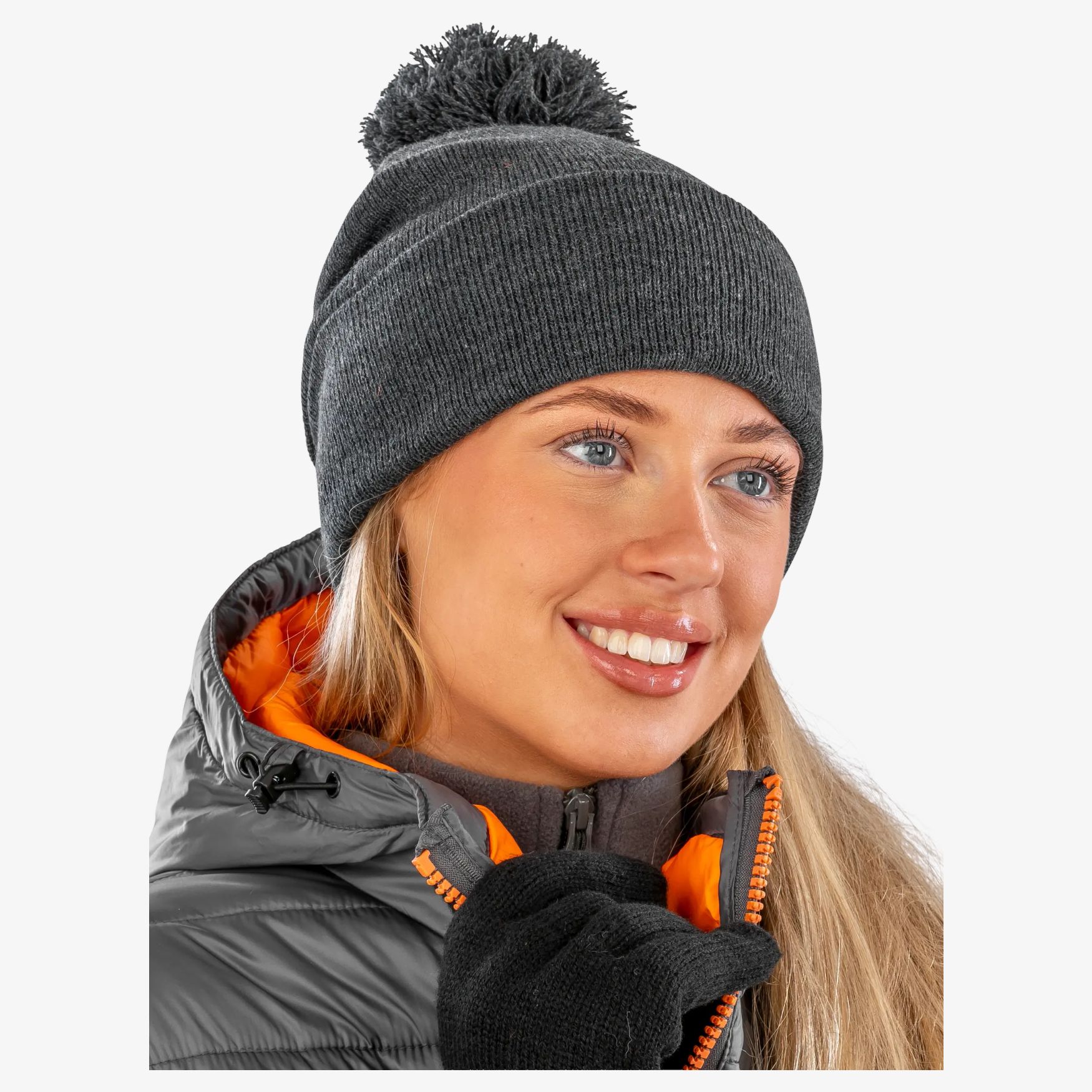 Pompom Beanie czapka z grubego splotu dzianiny z pomponem, wykonana w konstrukcji dwuwarstwowej i z szerokim wywiniętym mankietem. Zakrywająca, odpowiednia do codziennego użytku. Skład: 100% poliakryl, z wyjątkiem koloru szarego: 50% poliester, 50% poliakryl.
