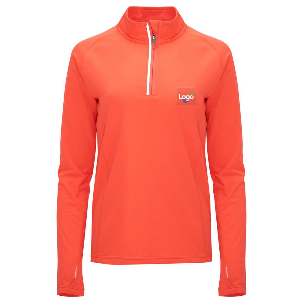 Sweat techniczny długich rękawów raglan dla kobiet. Wnętrze puszyste dla zwiększonego komfortu. Wzmocniony i kontrastowy pas czystości wewnątrz kołnierza. Półzapięcie odwrócone ton w ton z refleksyjnym szczegółem dla zwiększonej widoczności. Manchet z otworem dla kciuka dla optymalnego dopasowania. Tył jest nieco dłuższy niż przód dla lepszej ochrony. Refleksyjny szczegół na tyłach dla zwiększonej bezpieczeństwa. Etykieta odpinana dla personalizowanego komfortu. Tkanina techniczna Duo concept oferująca wydajność i komfort. Możliwość personalizacji poprzez haft do wyświetlenia swojego logo lub wizualu.