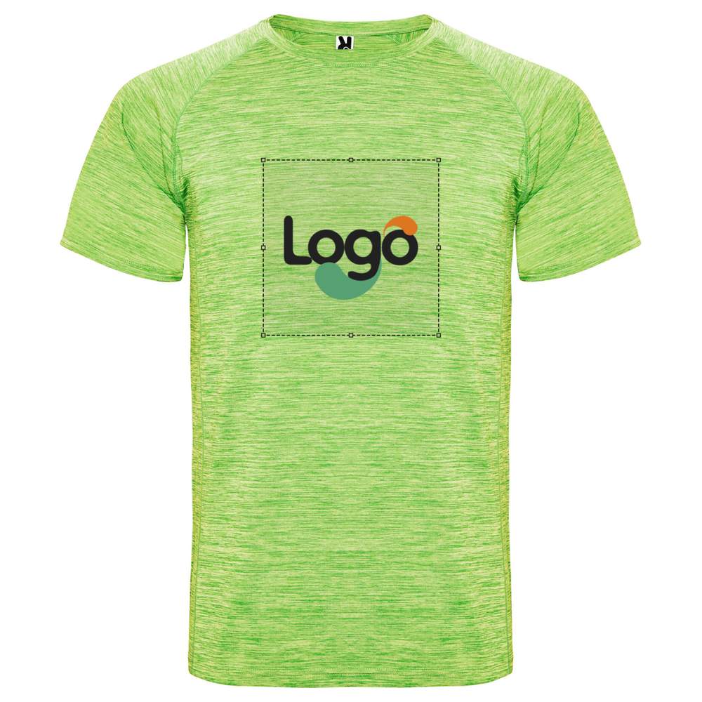 Koszula techniczna z tkaniny poliestrowej, rękawy krótkie stylu raglan. Kołnierz okrągły. Koszula z opadniętym materiałem, wygodna i łatwo dostosowująca się do ciała. Model oddychający ze szybkim schnięciem. Odpinana etykieta. Tkanina techniczna. Specjalne sublimowanie. Skład: 100% poliestrowy space dye.