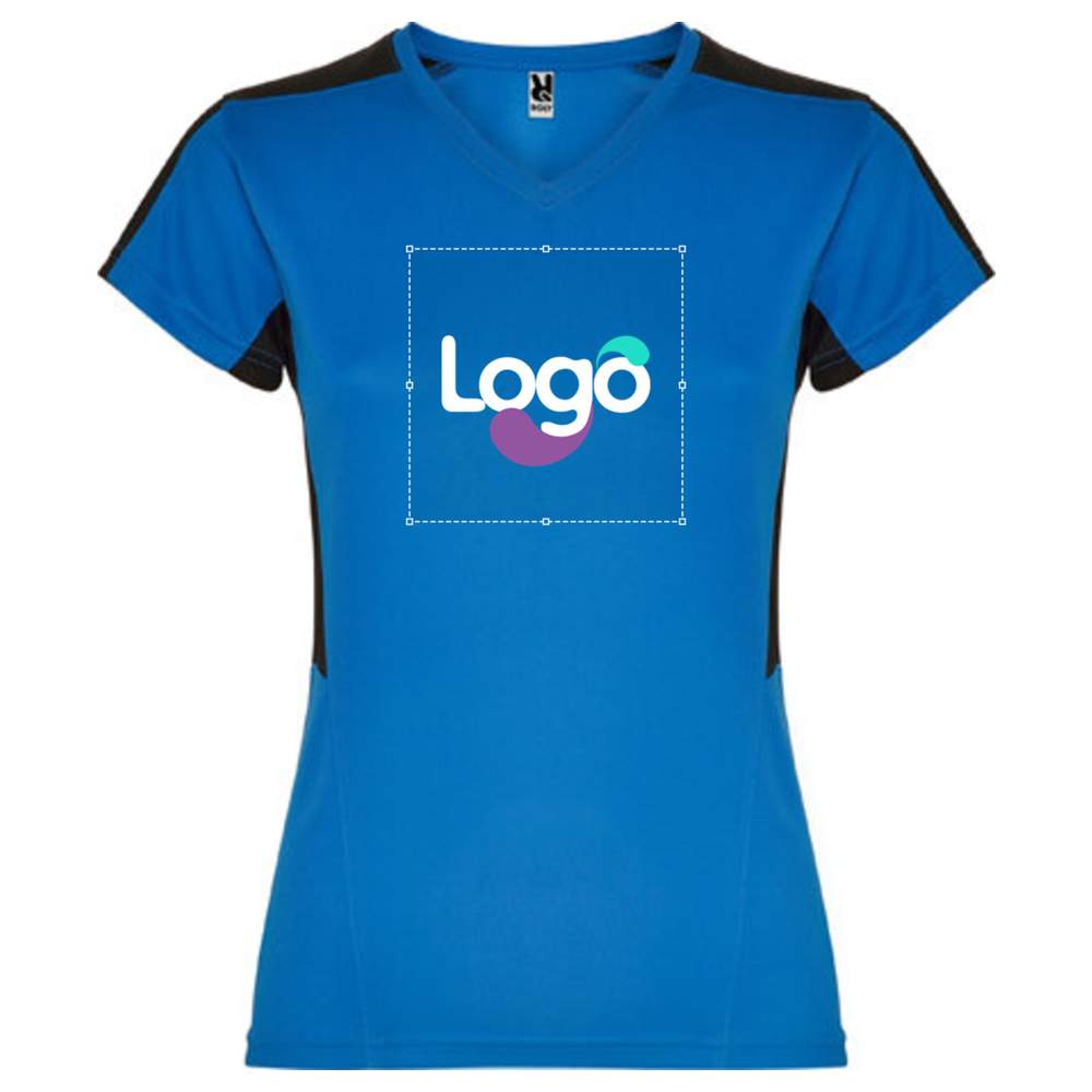Koszulka techniczna z krótkimi rękawami dla kobiet. Krój V. Połączono płaty boczne i ramiona z dwoma tkaninami poliestrowymi. Główne tkaniny bird’s eye i tkanina 3D oddychająca na barkach i płatach bocznych. Tkanina absorbująca wilgoć. Model oddychający z łatwym suszeniem. Odłączalna etykieta. Tkanina techniczna. Specjalna sublimacja. Możliwość personalizacji za pomocą swojego loga lub wizualu.