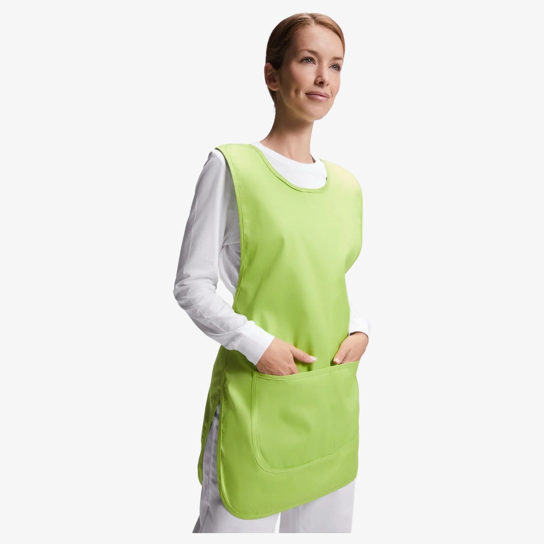 Ten odwracalny fartuch chasuble oferuje praktyczne i wszechstronne rozwiązanie dla różnych środowisk zawodowych. Zaprojektowany do użytku przez profesjonalistów w dziedzinie zdrowia, estetyki, gastronomii i sprzątania, łączy funkcjonalność i komfort. Jego odwracalny design zapewnia wszechstronne zastosowanie, a dwa przednie kieszenie oferują dostępne miejsce na przechowywanie. Paski w talii pozwalają na dostosowanie do indywidualnych potrzeb, zapewniając komfortowe i bezpieczne noszenie. Odłączalna etykieta ułatwia identyfikację i oznaczenie. Ten fartuch został zaprojektowany, aby spełniać wymagania środowisk zawodowych, oferując jednocześnie zwiększoną trwałość.