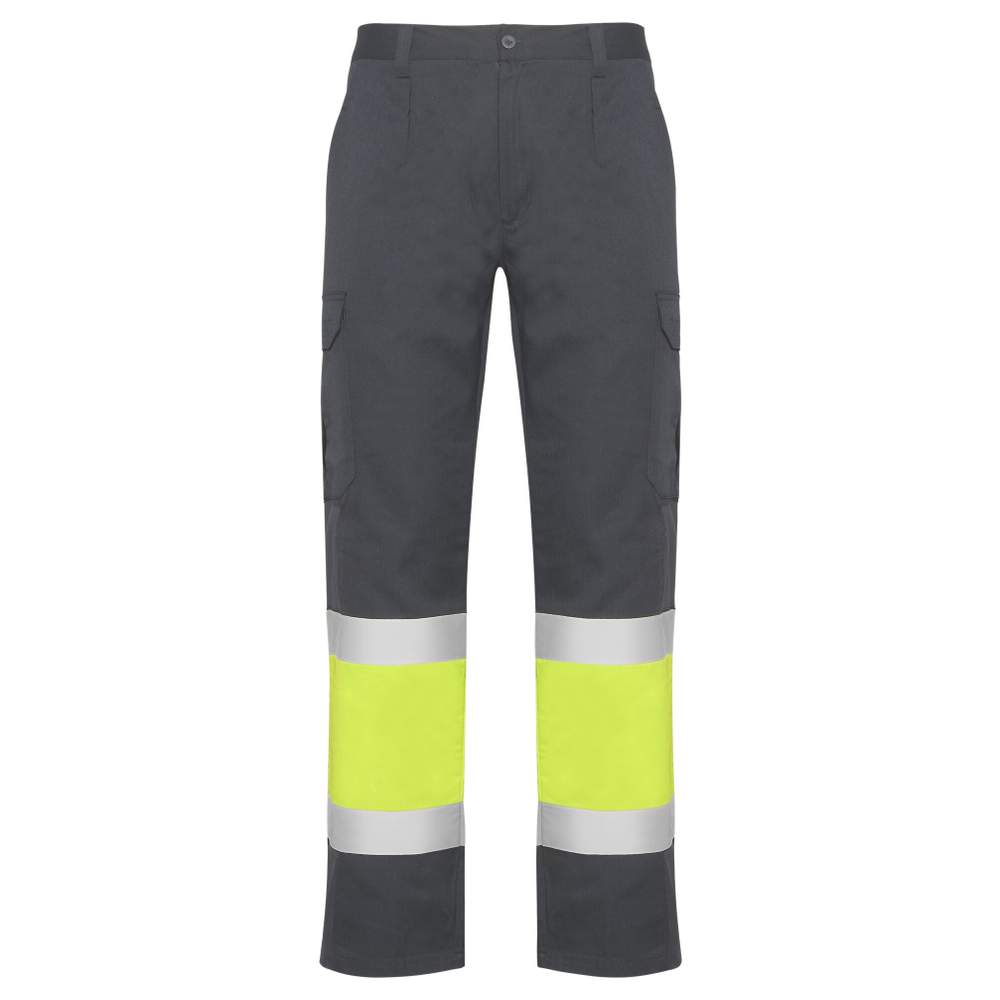 Lekkie spodnie letnie z wieloma kieszeniami o wysokiej widzialności. Elastyczny pasek na plecach. Dwie kieszenie z klapami na plecach zamykane na velcro. Dwie kieszenie przednie i dwie boczne z wiatrochronem i klapą zamykaną na velcro. Kombinacja dwóch kolorów i pasy odblaskowe. Certyfikacja CE zgodnie z normami: EN ISO 13688:2013/A1:2021 I EN ISO 20471:2013/A1:2017. Klasa I. Wysoka widzialność. Skład: 80% poliestru, 20% bawełny