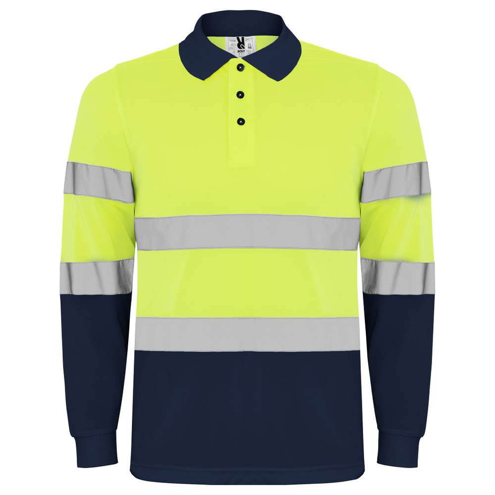 Polo techniczne długie rękawy wysokiej widoczności z dwoma odblaskowymi pasami na rękawach, pod klatką piersiową i na plecach. Zapięcie guzikowe z trzema guzikami. Kołnierz i mankiety w koszulce 1x1. Tkanina antyprzywarstwowa i łatwa do suszenia. Opcjonalny kieszeń. Certyfikacja CE zgodnie z normami: EN ISO 13688:2013/A1:2021EN ISO 20471:2013/A1:2017. Klasa II. Etykieta odłączalna.