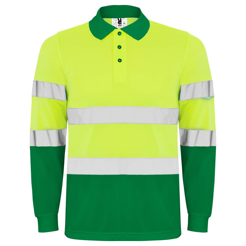 Polo techniczne długie rękawy wysokiej widoczności z dwoma odblaskowymi pasami na rękawach, pod klatką piersiową i na plecach. Zapięcie guzikowe z trzema guzikami. Kołnierz i mankiety w koszulce 1x1. Tkanina antyprzywarstwowa i łatwa do suszenia. Opcjonalny kieszeń. Certyfikacja CE zgodnie z normami: EN ISO 13688:2013/A1:2021EN ISO 20471:2013/A1:2017. Klasa II. Etykieta odłączalna.