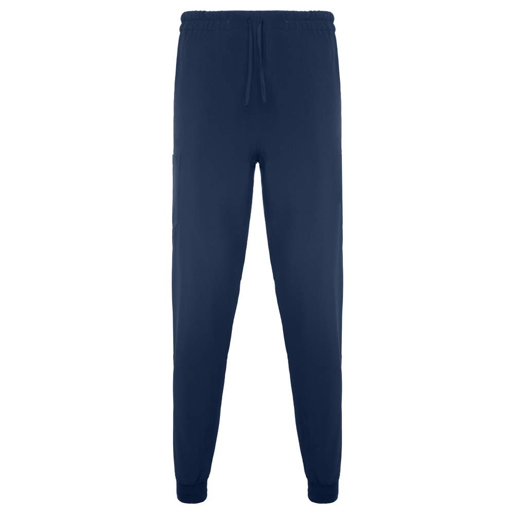 Spodnie uniseksowe proste kroju. Pas elastyczny i pas regulowany. Kieszenie francuskie. Model unisexowy dla następujących sektorów: laboratorium, opieka zdrowotna, estetyka, żywność, konserwacja.