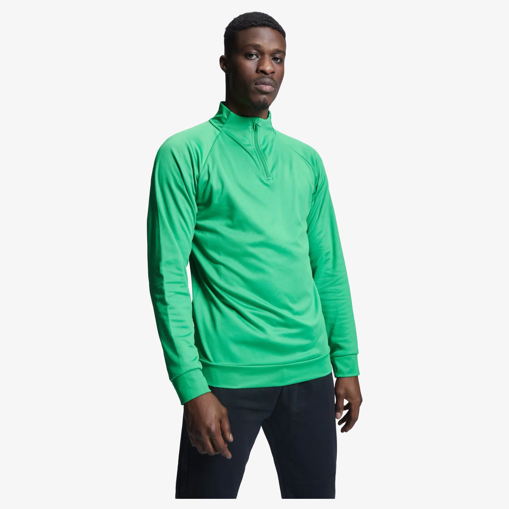 Sweat z rękawami raglan z wewnętrznym miękkim moltonem dla optymalnego komfortu. Kołnierz z półzipem i wzmocnioną taśmą czystością ton w ton. Manchetki i doły z kołdrą 1x1 dla dokładnego dopasowania. Odpinana etykieta dla zwiększonego komfortu. Techniczna tkanina zapewniająca wydajność i trwałość.