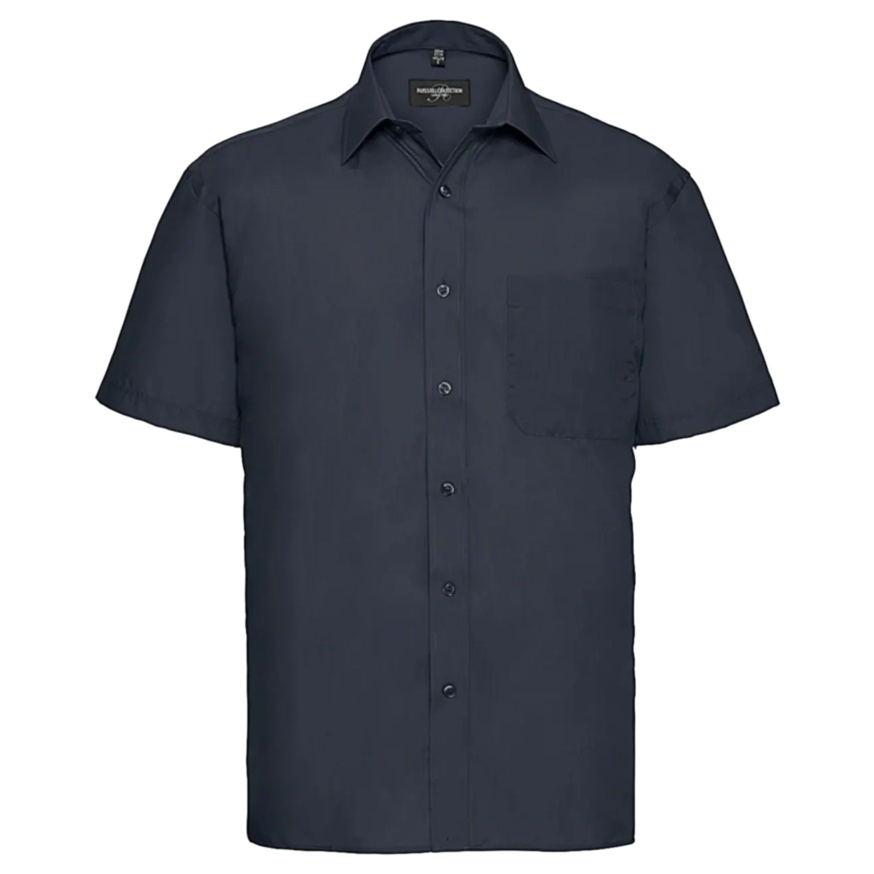 Koszula z krótkim rękawem wykonana z popeliny z 65% poliestru i 35% bawełny. Posiada kołnierz włoski, guziki w tonacji, wszywkę na ramieniu z dwoma zakładkami odwrotnymi, kieszeń na piersi oraz klasyczny krój z prostym dołem.