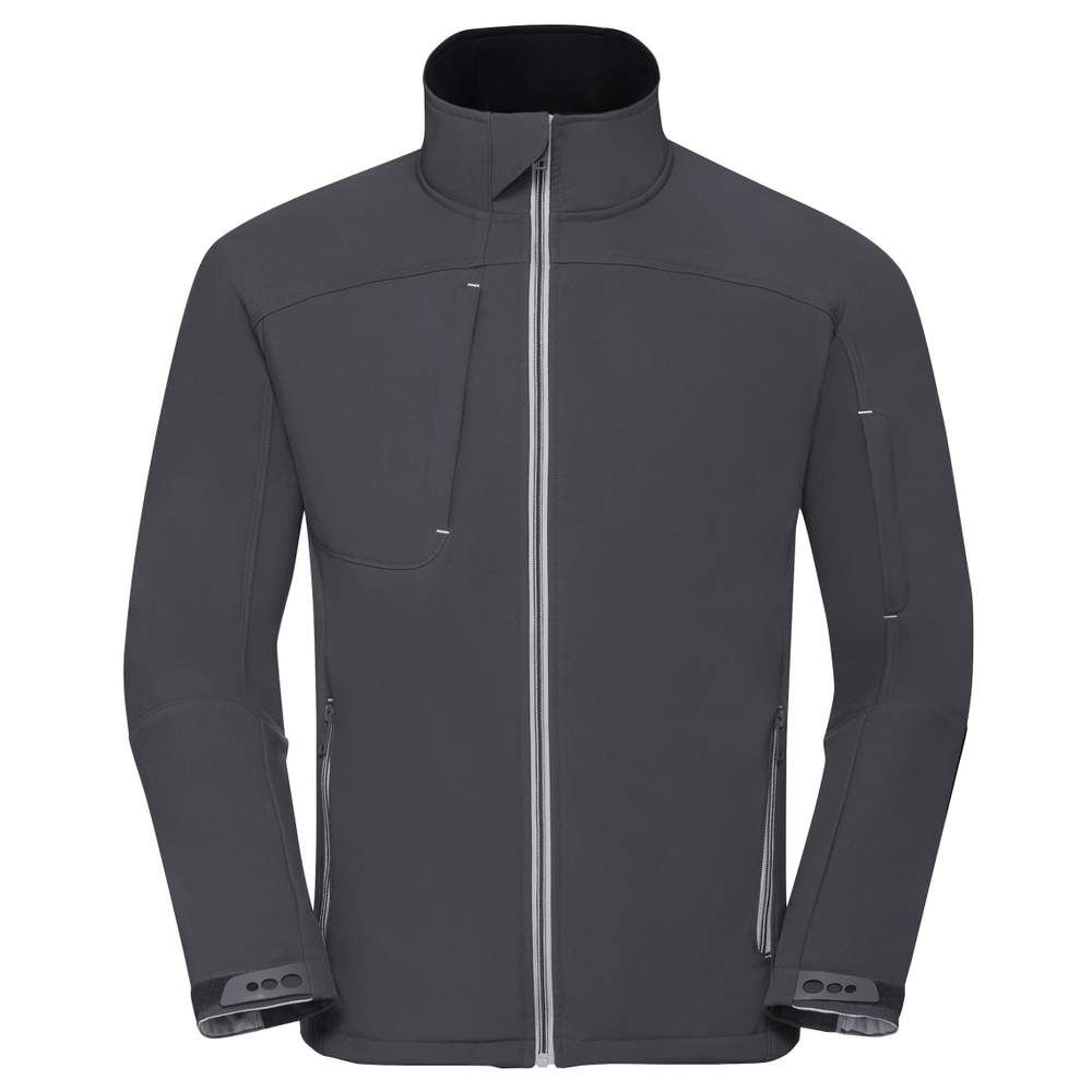 Ta męska odzież softshell oferuje nowoczesny klasyczny krój, idealny do różnorodnych aktywności. Integrowane kontrastowe zameczki nadają mu wyjątkowy wygląd. Dispone z zamek z klapką, w tym kieszeń na piersi i kieszeń na rękawie, oferując praktyczne i bezpieczne miejsce na przechowywanie. Protetyczny podbródek zapewnia dodatkowy komfort. Manchetki są regulowane za pomocą Velcro® dla idealnego dopasowania. BIONIC-FINISH Eco zapewnia dodatkową ochronę.