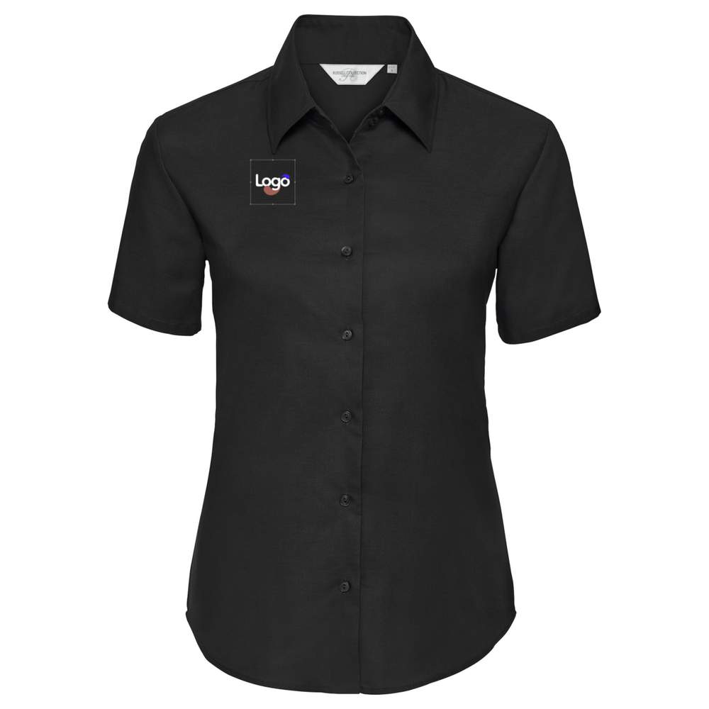 Ta kobieca bluzka z krótkim rękawem jest wykonana z 70% bawełny i 30% poliestru, co zapewnia optymalny komfort i dobrą trwałość. Jej dopasowany kroj i klasyczny kołnierz z dwoma guzikami nadają jej elegancki i kobiecy wygląd. Szwy na piersi i plecach przyczyniają się do przyjemnego kroju, podczas gdy brak kieszeni utrzymuje czysty wygląd. Łatwa w utrzymaniu, ta bluzka jest zaprojektowana, aby minimalizować potrzebę prasowania.