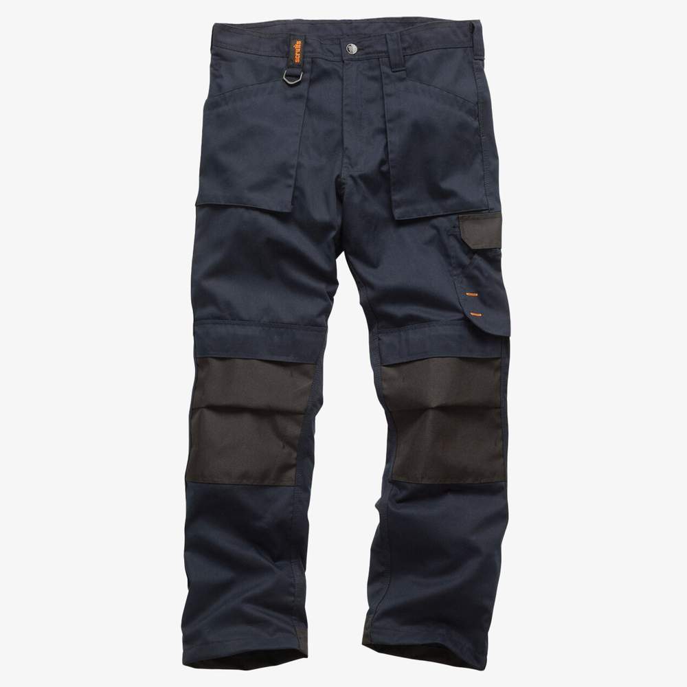 Spodnie robocze o prostej kroi, wykonane z lekkiego i trwałego tkaniny sergiowej dla optymalnego komfortu i wydajności. Wzmocnione kieszenie na kolanach z tkaniny odpornej na ścieranie z dostępem z góry dla zwiększonej wytrzymałości. Wyposażone w płaskie kieszenie przednie z klapami, kieszeń cargo, kieszeń na linijkę i kieszeń na telefon komórkowy. Zainstalowana jest pętla na młotek i pierścień D do transportu narzędzi i akcesoriów. Wyściółka z wytrwałej tkaniny i wzmocnione kieszenie dla zwiększonej trwałości. Trzypłatkowe szwy dla lepszej wytrzymałości. Zamknięcie z zamkiem błyskawicznym.
