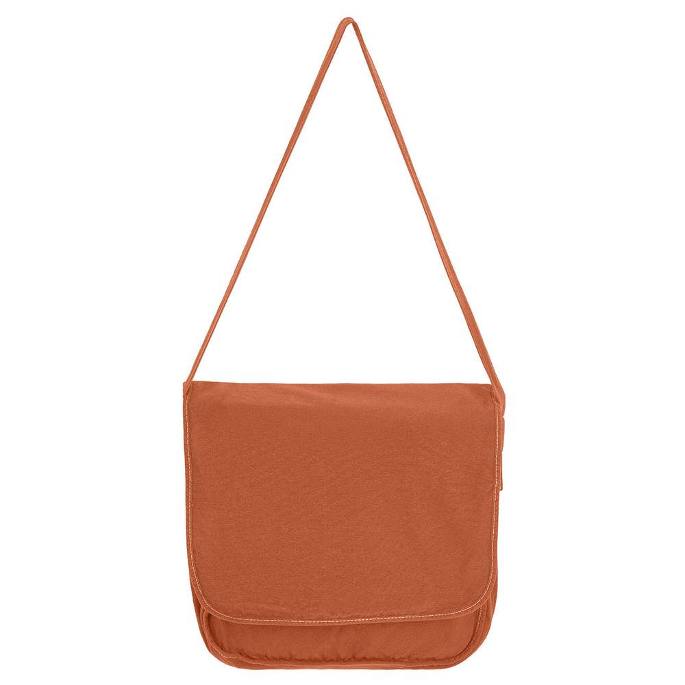 Stylowa i elegancka torebka kurierska. Dostępna w subtelnych, modnych odcieniach, każda torebka jest unikalna dzięki technice farbowania. Wyposażona w zamknięcie na guzik z antycznego mosiądzu pod klapą oraz kontrastowe szwy dla większego stylu, jest zarówno praktyczna, jak i modna. Długość rzemienia: 95 cm. Wymiary: 37 x 30 x 9 cm Skład: 100% bawełna (płótno).