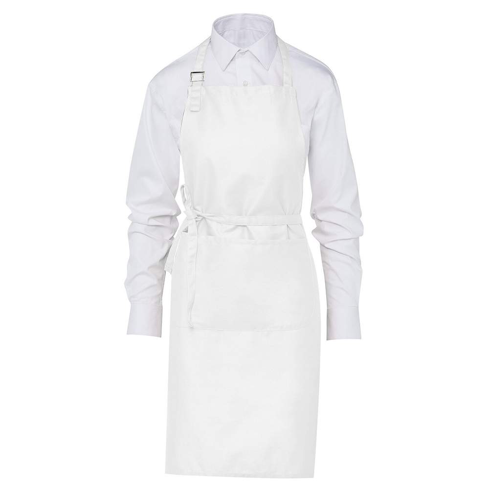 Ten funkcjonalny fartuch z kieszenią składa się w 100% z bawełny, co daje bardziej naturalny wygląd i uczucie. Łatwy do regulacji dzięki metalowej klamrze na szyję, jest elegancki i wygodny, idealny w każdym środowisku. Wbudowana kieszeń. Linki z zatrzaskami. Wymiary: 71 x 85 cm.