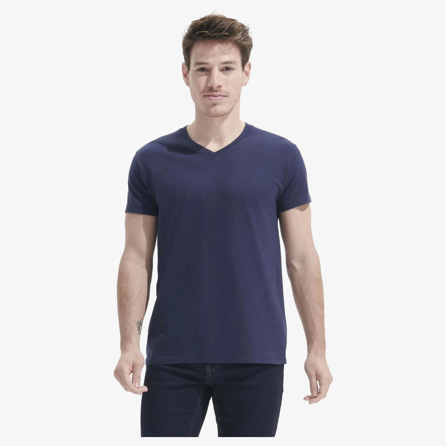 Koszula męska z kołnierzykiem "V" w jersey 190, wykonana w 100% bawełny półszczotkowanej Ringspun dla optymalnego komfortu. Ma pasek czystości na kołnierzu i kołnierz z bordowym kołem w kształcie litery V. Długie rękawy i prostokątna krojona nadają jej nowoczesny i swobodny wygląd.