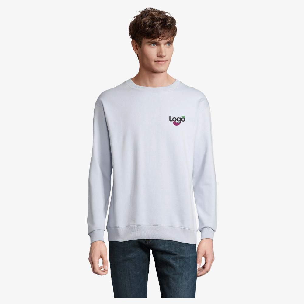 Ten sweter uniseksualny Kolumbia SOL'S zapewnia optymalny komfort dzięki swojemu składowi z certyfikowanej bawełny i recyklingowego poliestru GRS. Jego okrągły kark i montowane rękawy zapewniają klasyczny styl i wygodę. Rękawy, kark i dolna część ubrań z bordówkami 1x1 gwarantują dobrą trwałość i elegancki wygląd. Wewnętrzna taśma czystości w kołnierzu dodaje dodatkowego komfortu. Ten sweter jest idealny do personalizacji przez haftowanie lub druk logo, co pozwala stworzyć unikalny ubiór reprezentujący markę.