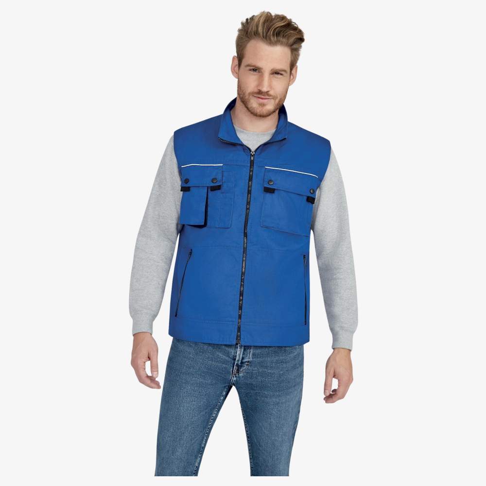 Ta bezrękawowa kurtka Zenith pro od SOL'S jest wykonana z poliestru i bawełny 240 (65% poliestr, 35% bawełna) dla optymalnego komfortu i trwałości. Ofruje praktyczne i funkcjonalne rozwiązanie dla profesjonalistów. Ma sześć kieszeni, w tym kieszeń przenośną i kieszeń wewnętrzną, zapewniając bezpieczne przechowywanie rzeczy osobistych. Klapy na kieszeniach są wyposażone w paski odblaskowe dla lepszej widoczności. Zapewnia także trzy miejsca na pisaki, ułatwiając dostęp do narzędzi pisarskich. Zamknięcie z zapięciem błyskawicowym czarnego koloru gwarantuje łatwe i szybkie zamykanie. Ma też tkaną wewnętrzną etykietę identyfikacyjną.