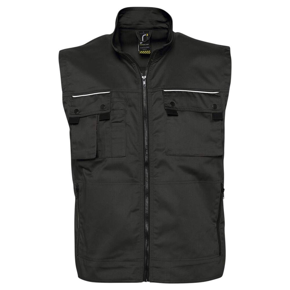 Ta bezrękawowa kurtka Zenith pro od SOL'S jest wykonana z poliestru i bawełny 240 (65% poliestr, 35% bawełna) dla optymalnego komfortu i trwałości. Ofruje praktyczne i funkcjonalne rozwiązanie dla profesjonalistów. Ma sześć kieszeni, w tym kieszeń przenośną i kieszeń wewnętrzną, zapewniając bezpieczne przechowywanie rzeczy osobistych. Klapy na kieszeniach są wyposażone w paski odblaskowe dla lepszej widoczności. Zapewnia także trzy miejsca na pisaki, ułatwiając dostęp do narzędzi pisarskich. Zamknięcie z zapięciem błyskawicowym czarnego koloru gwarantuje łatwe i szybkie zamykanie. Ma też tkaną wewnętrzną etykietę identyfikacyjną.