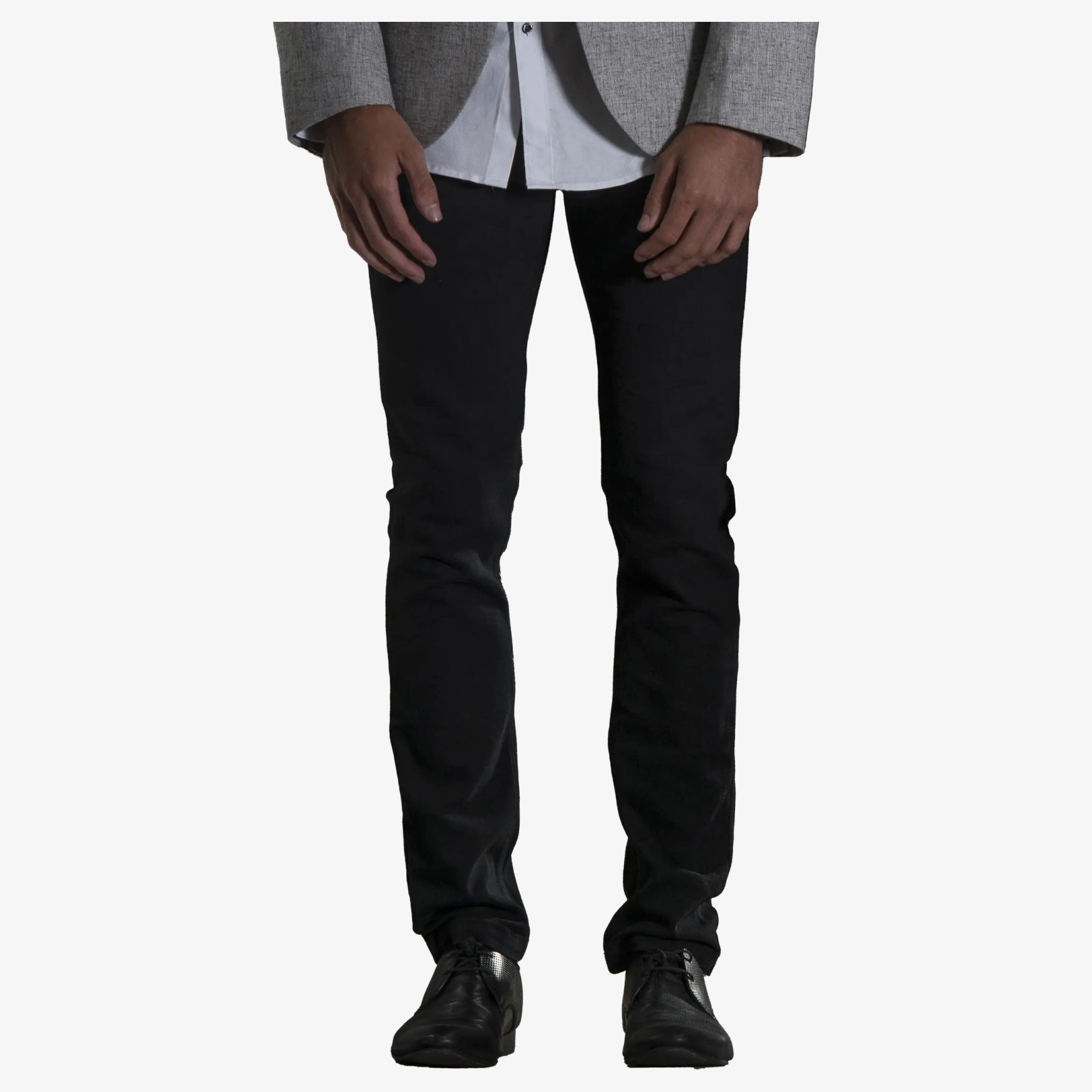 Te spodnie cechują się nowoczesnym krojem slim, wykonane z denimu z stretch, co zapewnia optymalny komfort. Mają klasyczny styl pięciu kieszeni, podkreślony lekko matowym wykończeniem i subtelnym odbarwieniem w kolorze niebieskim. Pasek jest wykonany z tego samego materiału co spodnie, zapewniając ciągłość wizualną. Zamknięcie składa się z przycisku na łodygę i zamek błyskawiczny YKK. Kąty kieszeni są wzmocnione metalowymi zapięciami. Szwy są podwójnie szprychowane, podkreślając jakość wykonania.