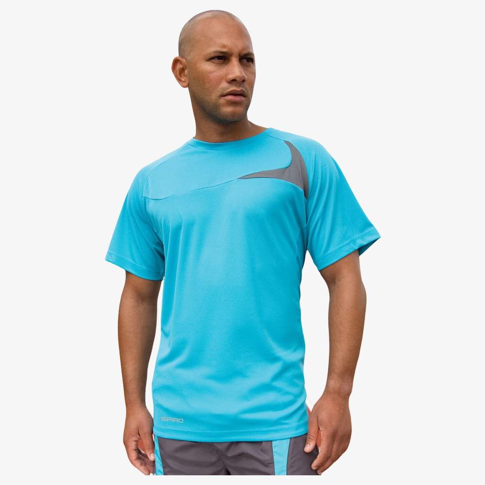 Koszulka treningowa Spiro dash jest zaprojektowana w celu optymalizacji wydajności sportowej. Wykonana z tkaniny poliestrowej Cool-Dry, która wspomaga efektywne zarządzanie wilgocią, co zapewnia szybkie suszenie i zwiększony komfort podczas wysiłku. Ta koszulka jest szczególnie odpowiednia do uprawiania różnych aktywności sportowych dzięki swoim właściwościom przepuszczalności powietrza i antybakteryjności. Oferuje optymalny komfort i swobodę ruchu.
