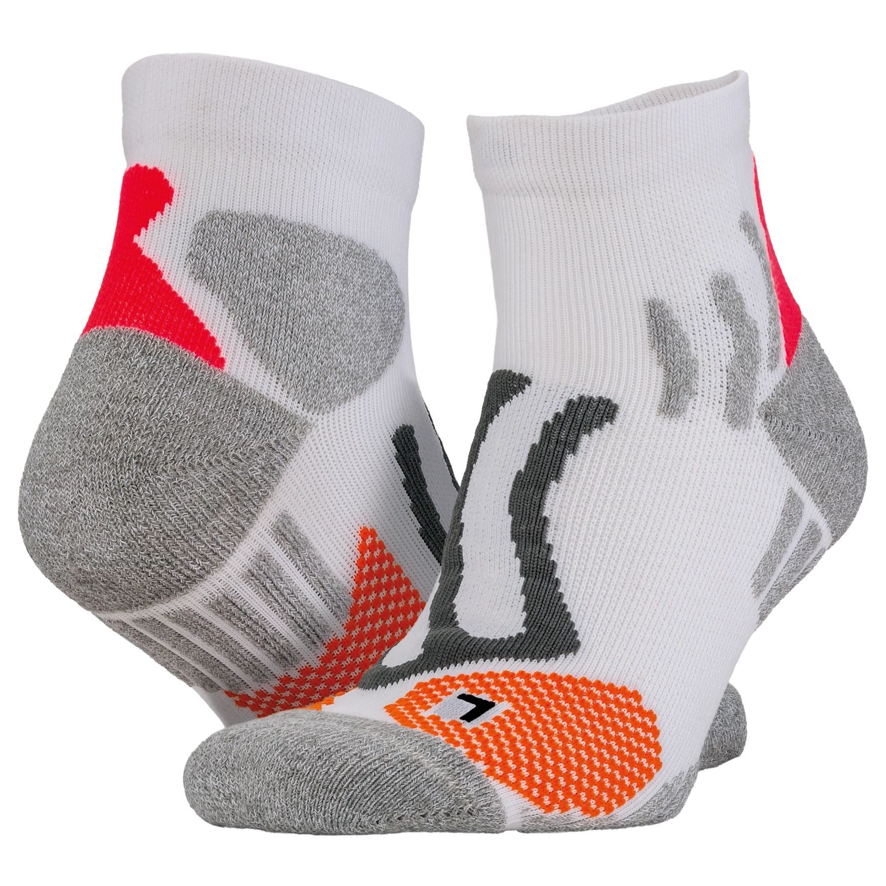 Techniczne skarpety kompresyjne do użytku sportowego i codziennego, z tkaniną COOLMAX, bezszwowym krojem i wzmocnionymi strefami. Podparcie łuku stopy oraz ukierunkowana podwójna warstwa sprzyjają komfortowi i amortyzacji.