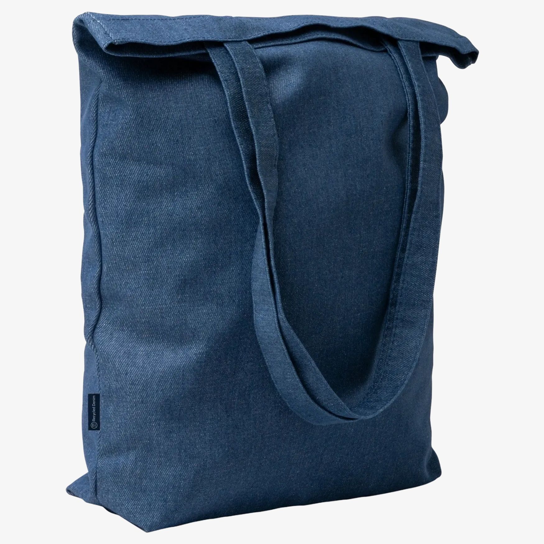 Torba na zakupy DEAM z denimu z recyklingu z dnem i uchwytami 70 cm nadaje się do przenoszenia zakupów i rzeczy osobistych. Wymiary: 38 x 42 x 9 cm.
