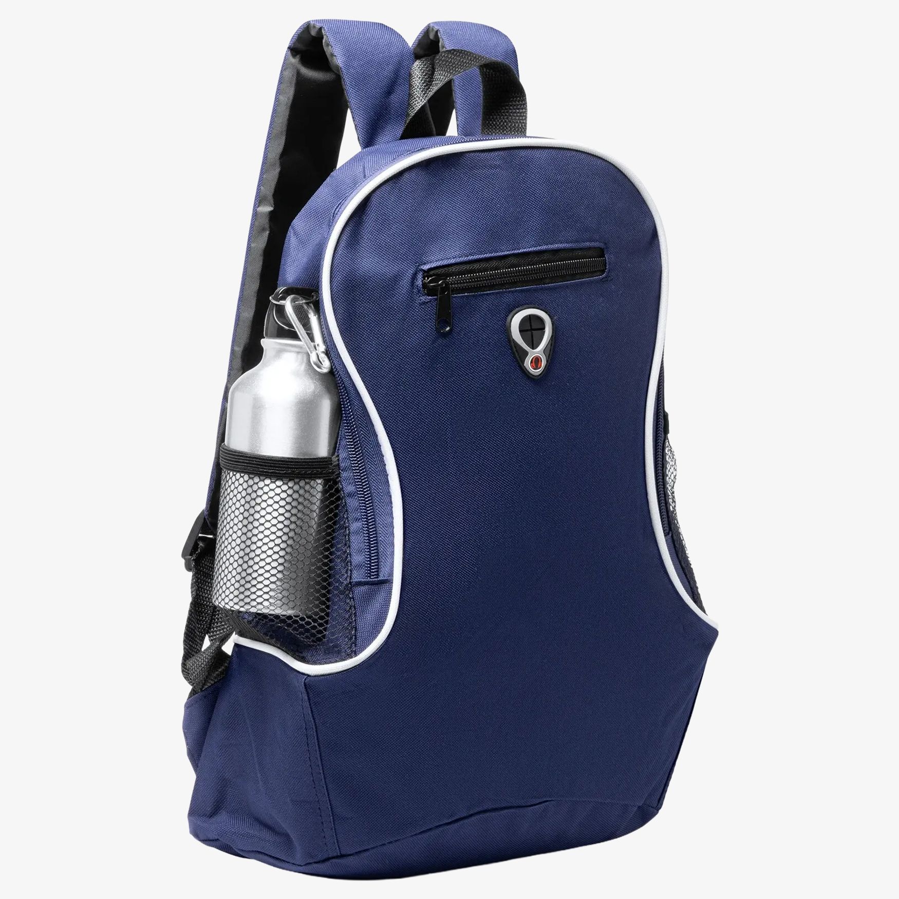 Plecak z poliestru z regulowanymi rączkami i górną rączką do łatwego zawieszania. Wyposażony w przedni zamek bębnowy i boczne kieszenie z mikroporystym materiałem. Wymiary: 30 x 40 x 18 cm, ofiarowuje pojemność 12 litrów.