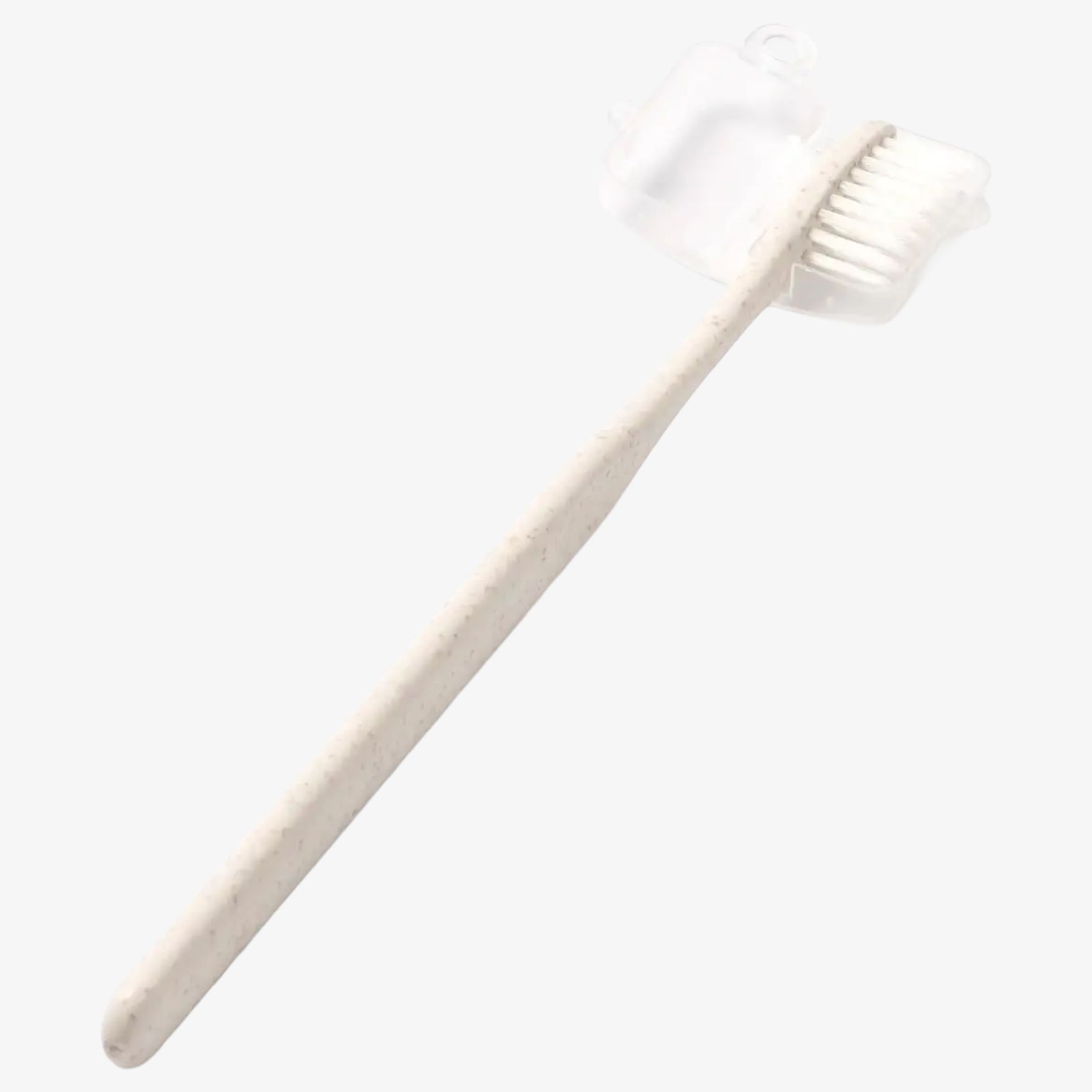 Szczoteczka do zębów Lemar łączy rączkę z włókna pszennego i miękkie nylonowe włosie do codziennego użytku. Wymiary: 18,5 x 1,6 x 1,2 cm.