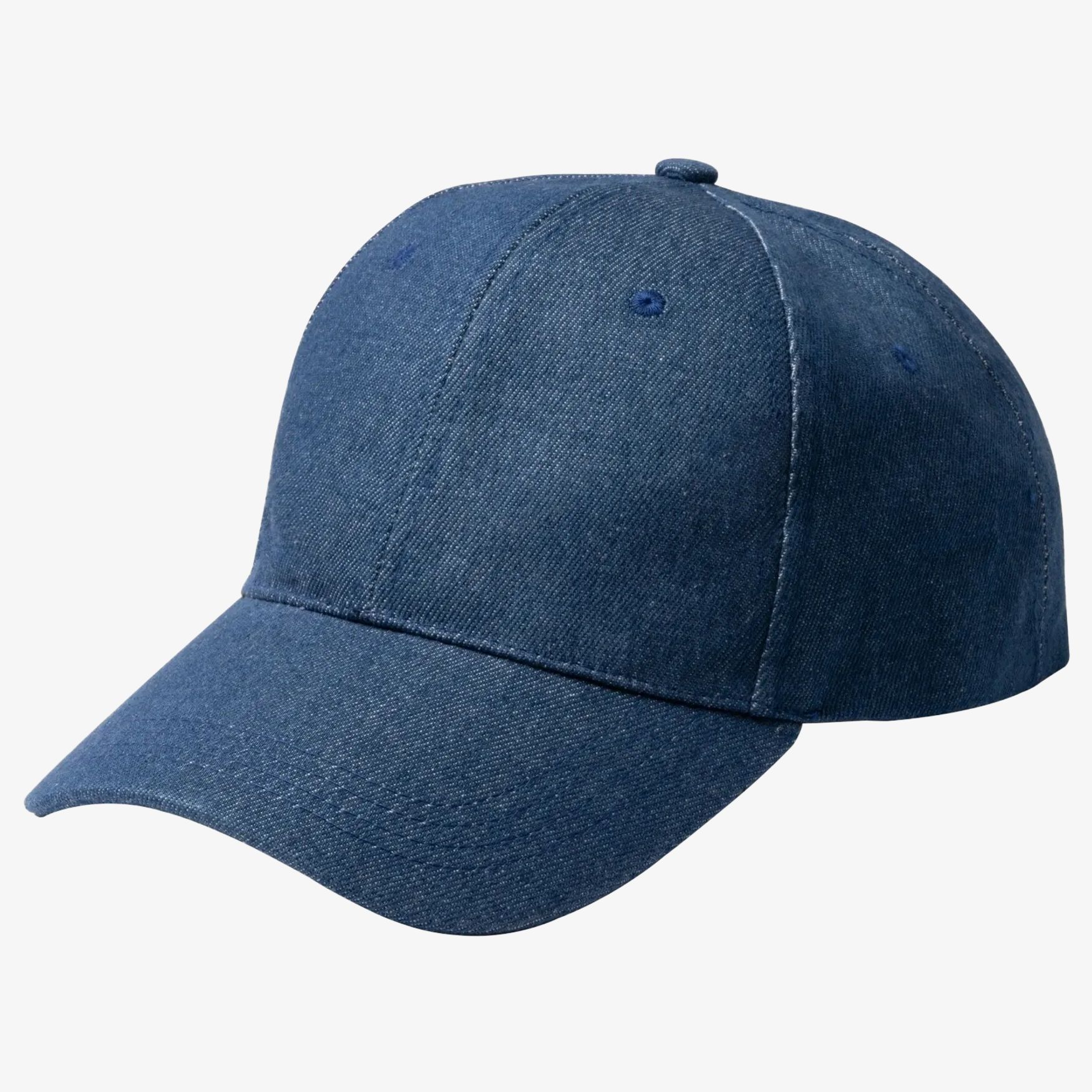 Czapka z daszkiem ISBUD z denimu z recyklingu, 6-panelowa, z oczkami wentylacyjnymi. Podany obwód głowy dla dorosłych: 57–59 cm. Skład: denim.