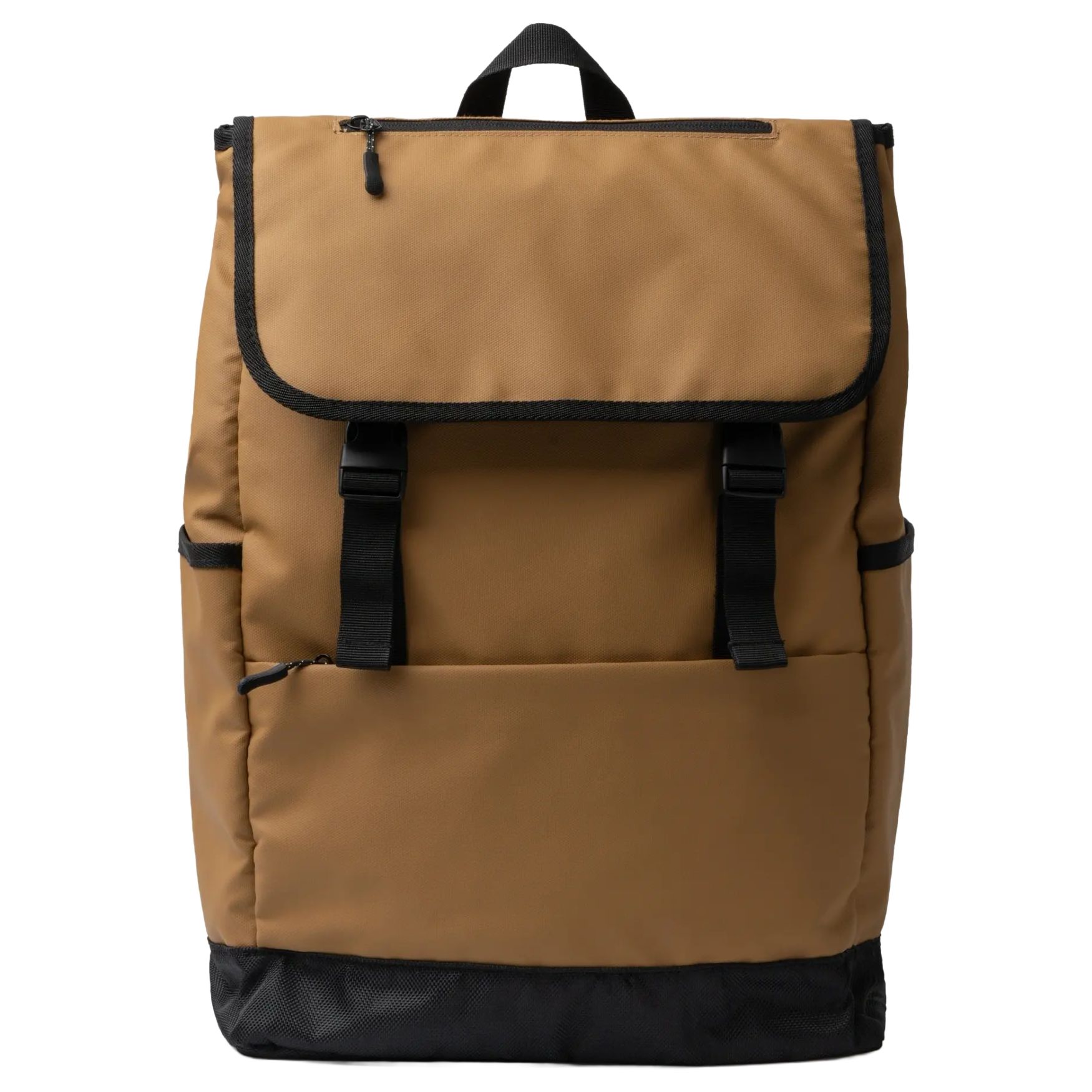 The TROIS backpack is made of PU with a leather flap. It includes a large interior compartment equipped with a 15-inch laptop pocket. The back straps are padded for more comfort. The bag also has an exterior flap pocket, a front outside pocket and side pockets. Total capacity is 20 liters.