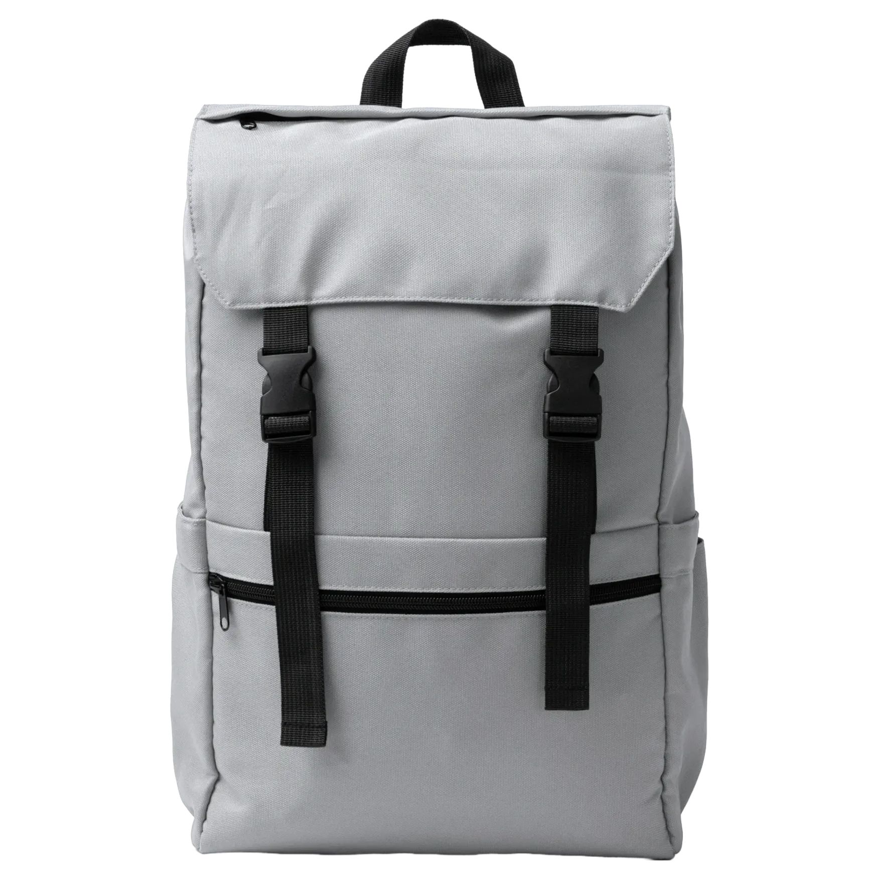 Plecak SOLAP wykonany z RPET 600 D z klapą wyposażoną w regulowane zapięcia. Zawiera główną kieszeń z wewnętrzną kieszenią na laptopa 15 cali, kieszeń zewnętrzną na klapie, przednią kieszeń na suwak oraz dwie boczne kieszenie elastyczne. Paski na plecy są wyściełane dla komfortu noszenia.