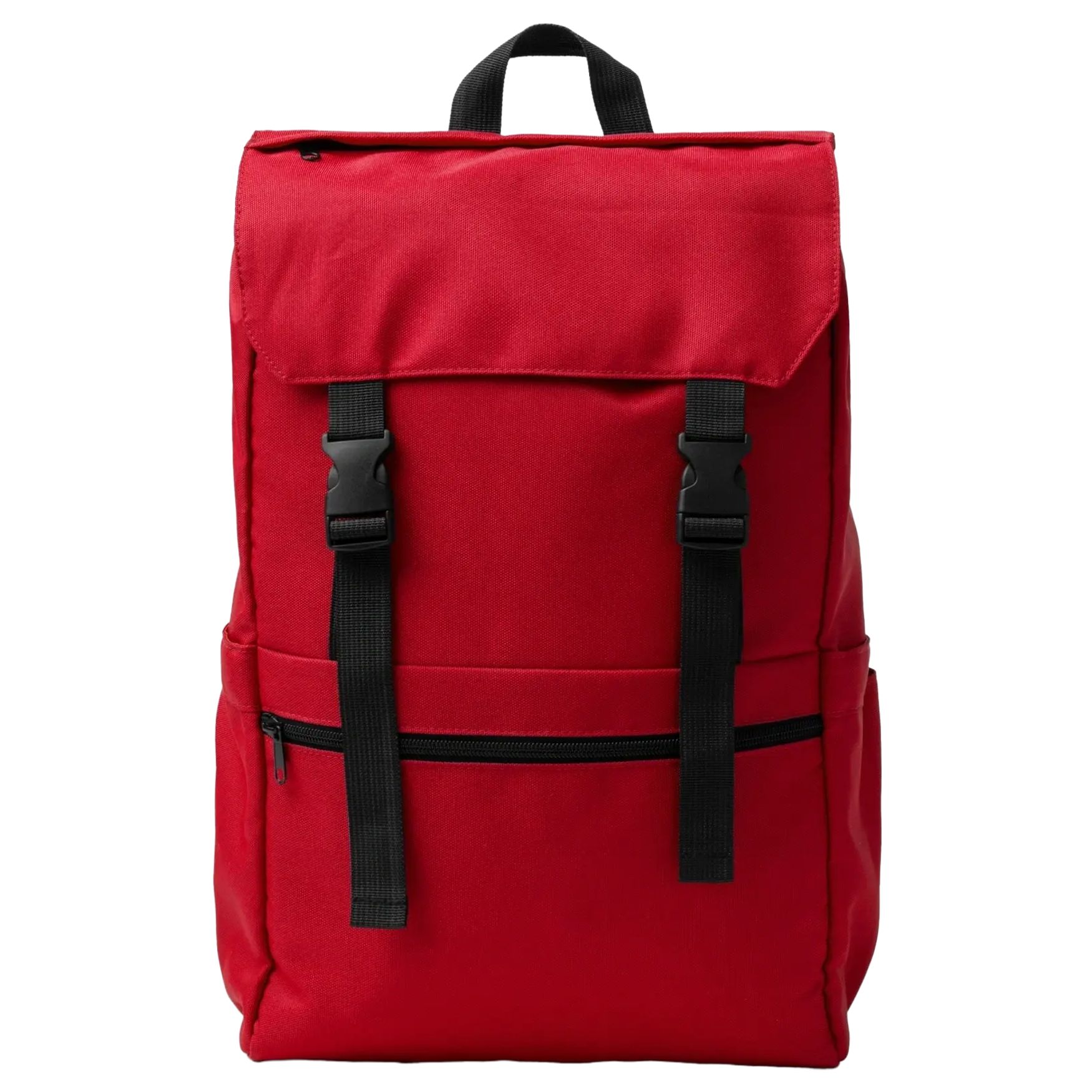 Plecak SOLAP wykonany z RPET 600 D z klapą wyposażoną w regulowane zapięcia. Zawiera główną kieszeń z wewnętrzną kieszenią na laptopa 15 cali, kieszeń zewnętrzną na klapie, przednią kieszeń na suwak oraz dwie boczne kieszenie elastyczne. Paski na plecy są wyściełane dla komfortu noszenia.