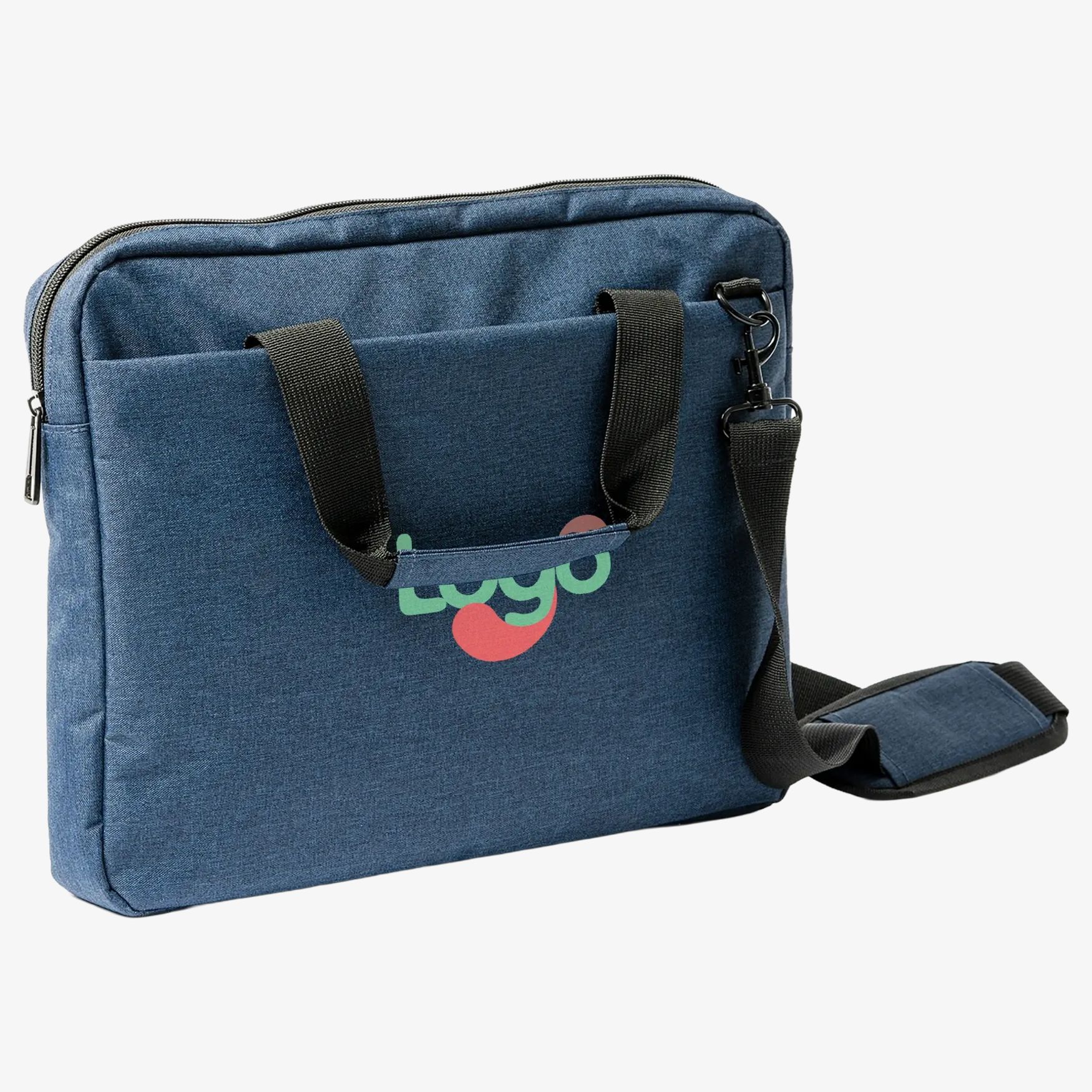 Etui na laptop KALMAR wykonane jest z recyklingowanego poliestru RPET 600 D o melanżowym wzorze. Zawiera dwie przegródki z zamkami wodoodpornymi, dopasowane uchwyty oraz regulowany pasek na ramię. Dołączony jest pasek do walizki ułatwiający transport. Wymiary etui to 37 x 5 x 28 cm.