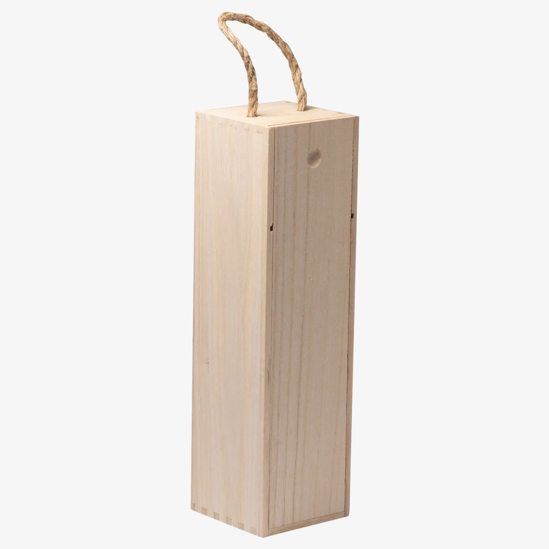 Wooden box with handle designed to carry a wine bottle safely. Size fits a standard bottle and ensures optimal stability thanks to its fitted interior. Handle facilitates grip and transport. Wood offers natural insulation against temperature variations.