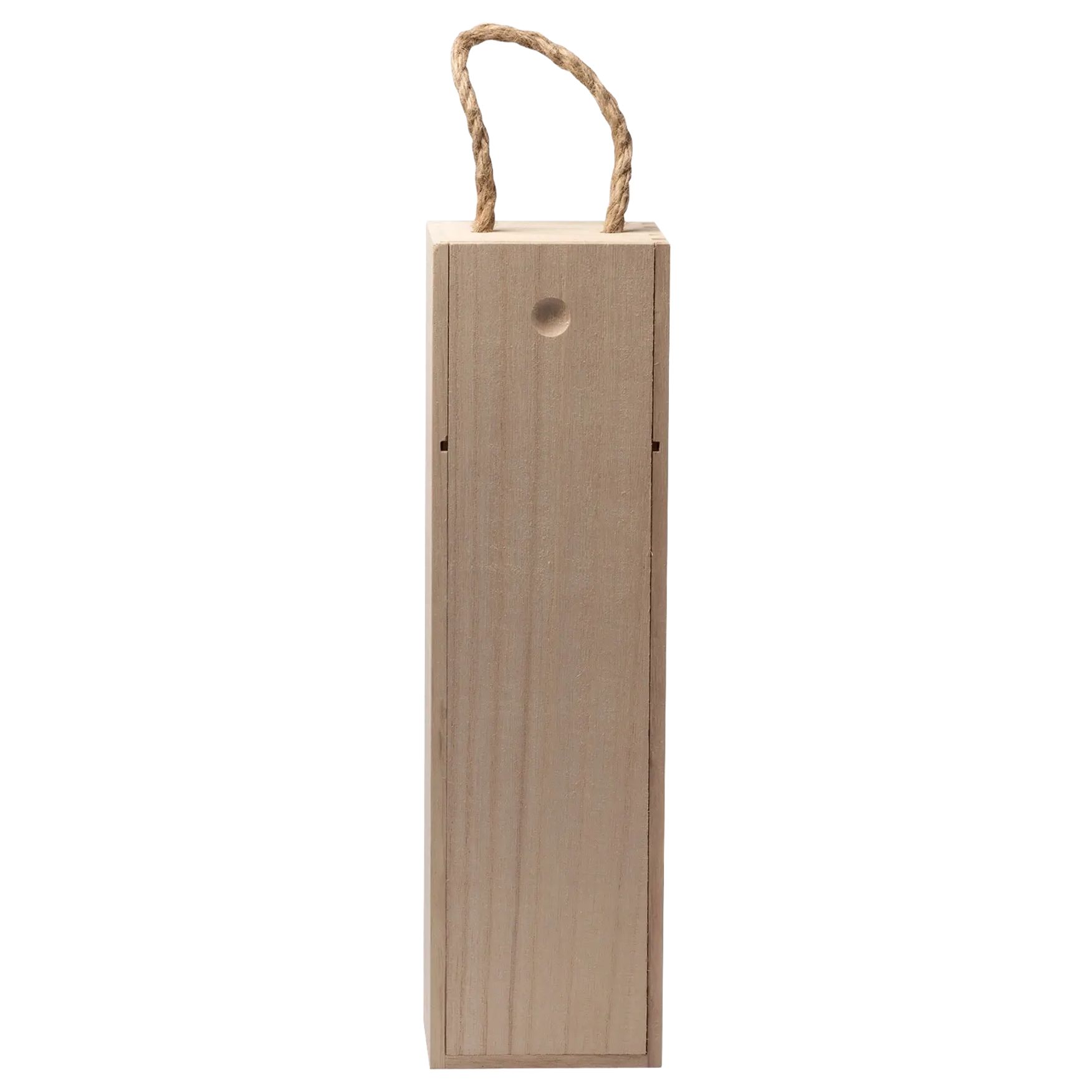 Wooden box with handle designed to carry a wine bottle safely. Size fits a standard bottle and ensures optimal stability thanks to its fitted interior. Handle facilitates grip and transport. Wood offers natural insulation against temperature variations.