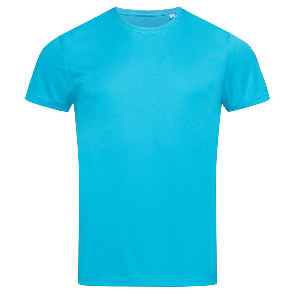 Przyklejona koszulka sportowa dla mężczyzn w funkcjonalnym interlocku wentylującym o szybkim suszeniu. Tkanina chłoniąca wilgoć i odprowadzająca pot, bez etykiety marki na szyi. ACTIVE-DRY°: materiał o szybkim suszeniu z doskonałą regulacją wilgoci i wentylacją, miękki i lekko połyskliwy materiał, odbłyśnikowy logo ACTIVE-DRY° na plecach, dekoracyjne płaskie szwy na ramionach, cienki kark w tym samym materiale, pas ochrony przed brudem, boczne szwy, mała etykieta rozmiaru na szyi, etykieta z informacjami o pielęgnacji w bocznym szwie.