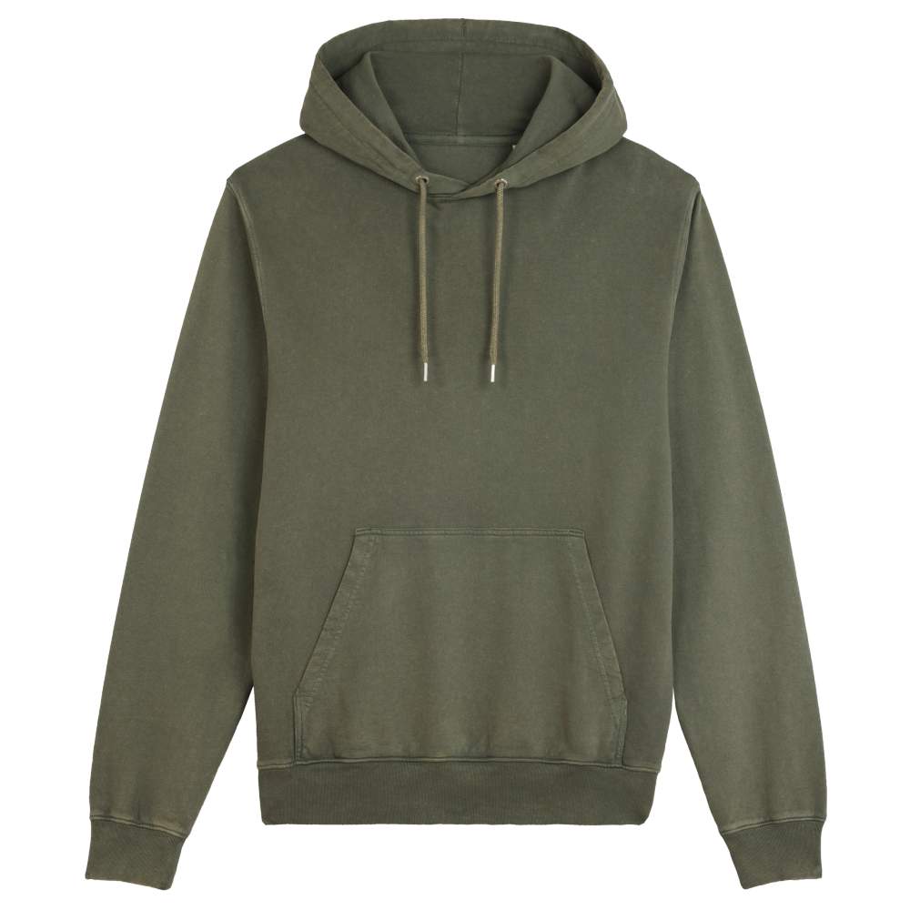 Uniseksowa koszula z kapturem medium fit w efektowym materiał tery. Rękawy montowane. Kapturek podwójnie wyłożony materiałem głównym. Równy sznurek z metalowym zakończeniem. Metalowe oczka. Pas z wierzchu na karku w kształcie litery V. Wkładka w kształcie półksiężyca z materiałem głównym na karku wierzchu. Brzegi mankietów i dołu koszuli ozdobione bordówkami 1/1. Podwójne steżki na ramionach, mankietach i dole koszuli. Kieszeń kanguro na przedzie. Ubranie barwione po skrojeniu, każde ubranie może się różnić w wyglądzie. Ubranie jest nieco ciemniejsze w okolicach szwów. Może blaknąć, postępuj zgodnie z instrukcjami na etykiecie. Skład: 100% ekologicznej bawełny przędzonej i szczotkowanej. Ta koszula oferuje idealną powierzchnię do personalizacji przez haft, pozwalając na włączenie swojego loga lub elementów graficznych dla większej widoczności.
