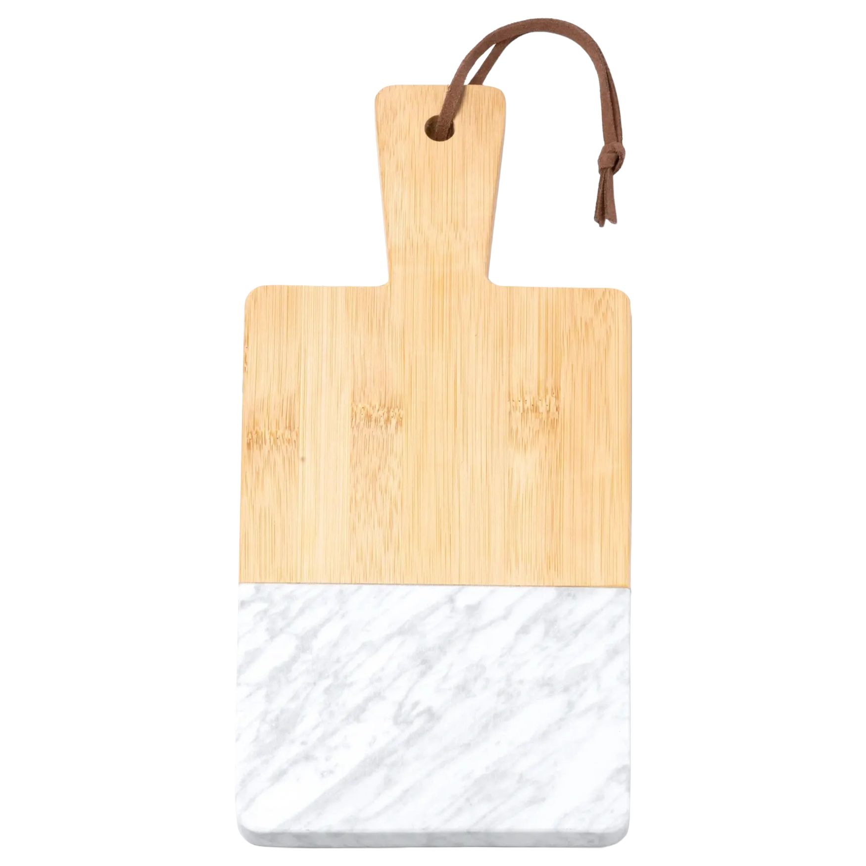 Deska do krojenia GINO wykonana jest z naturalnego bambusa z wykończeniem marmurowym. Posiada pasek do przenoszenia ze skóry ekologicznej i jest zapakowana w ekologiczne opakowanie.