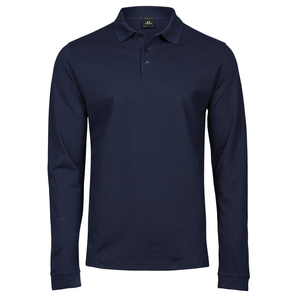 Ten długie rękawy polo oferuje dopasowaną szyję i optymalny komfort. Jest wykonany z 95% bawełny ringspun i 5% elastanu, zapewniając miękką i przyjemną dla skóry. Jego kompaktywna konstrukcja z miniaturowym piquem zapewnia dobrą wytrzymałość i elegancki wygląd. Polo jest wstępnie skurczone, aby zmniejszyć kurczenie się po praniu. Jest wyposażony w płaski kołnierz z lycry, pas z czystym ramieniem i starannie wykonany guzik. Długie rękawy są zakończone mankietami dla wygodnego dopasowania.