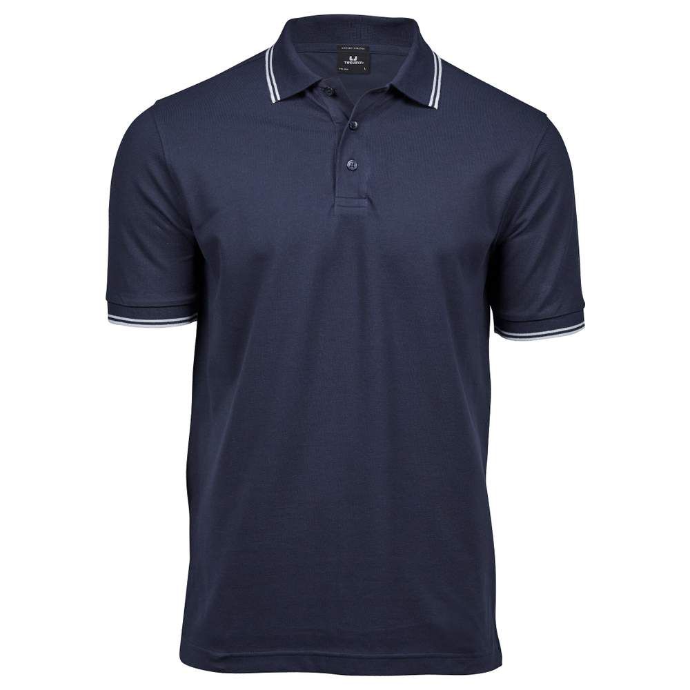 Luksusowe prążkowane elastyczne polo 1407 - Navy white