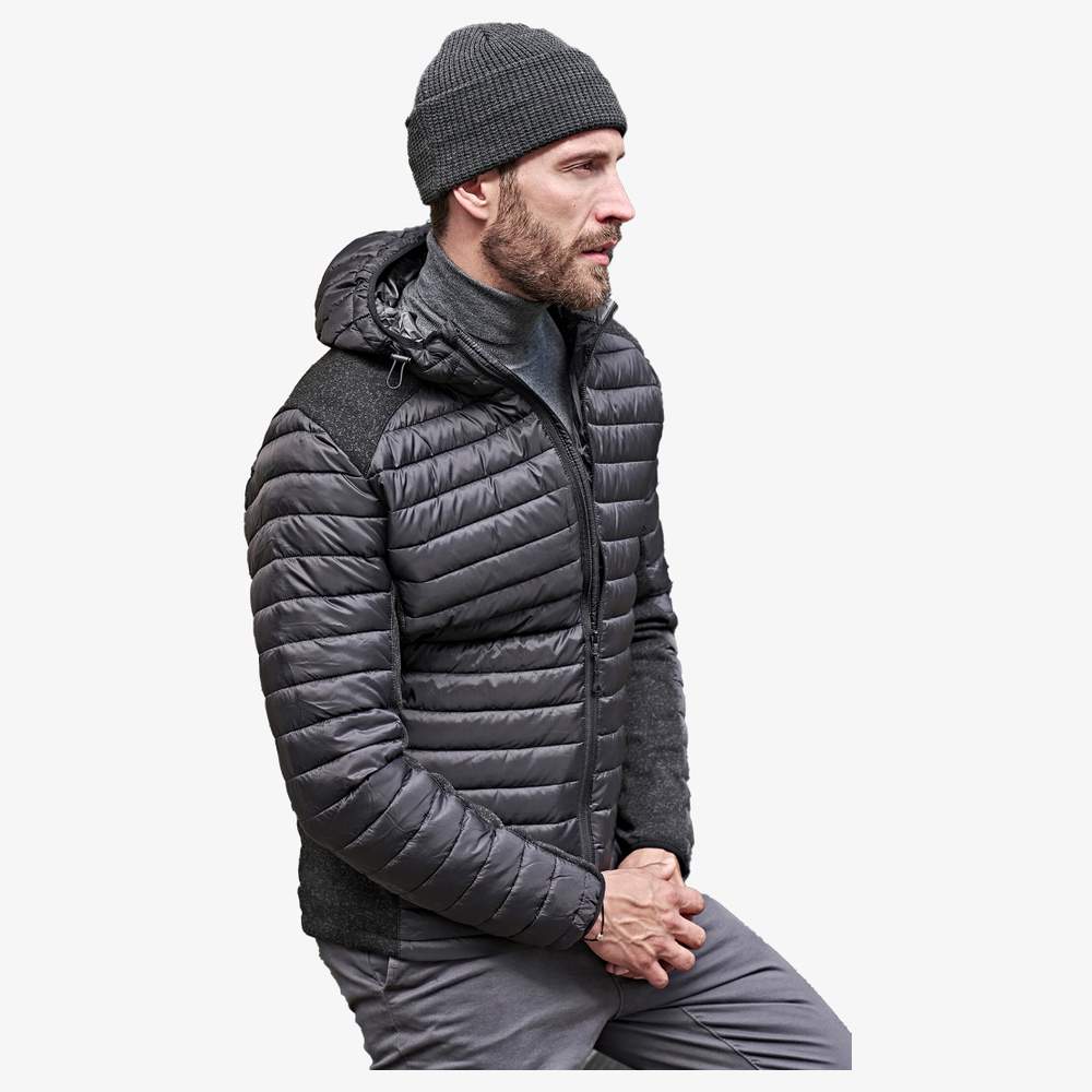 Męski kurtka z kapturem Crossover. Dopasowana sylwetka dla optymalnego komfortu. Dwa duże praktyczne boki oraz jedna wewnętrzna zabezpieczona kieszeń. Elastyczne mankiety zapewniają dobrą izolację termiczną, podczas gdy odwrócone zapięcia dodają nowoczesny akcent. Kapturek i talia są regulowane, aby dostosować się do Twoich potrzeb. Wykonany z 100% poliestru Ripstop 400T i 100% poliestru plecionego, ten kurtka oferuje zwiększoną wytrzymałość i trwały komfort. Ten model jest spersonalizowany, pozwalając na dodanie swojego loga lub elementów graficznych.