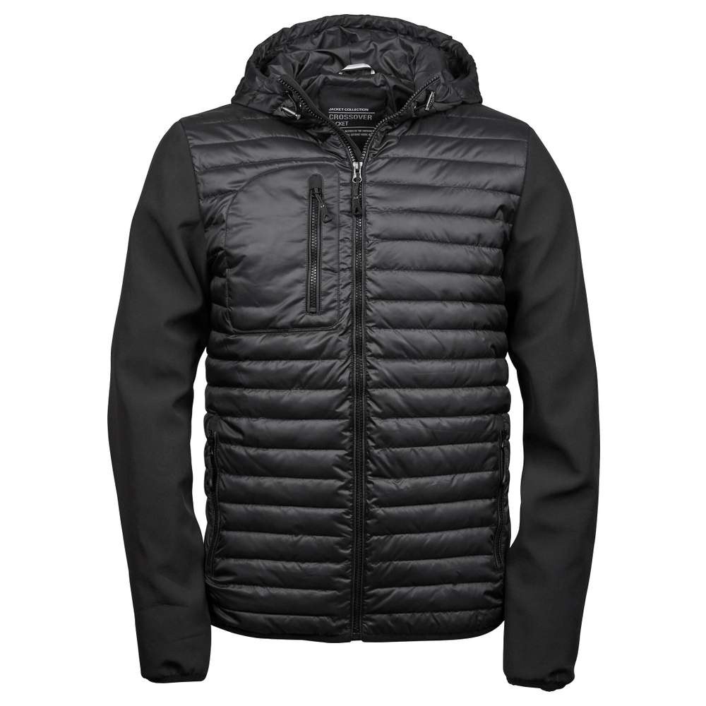 Męska dwumateriałowa kurtka zaprojektowana, aby zapewnić komfort i funkcjonalność. Wyposażona w kieszeń na piersi z zameczkiem, regulowaną kapturę i wysokiej jakości zameczki dla zwiększonej trwałości. Kombinacja poliesteru tłoczonego i softshellu zapewnia ochronę przed warunkami atmosferycznymi jednocześnie gwarantując swobodę ruchu. Kurtka posiada regulowany talia i elastyczne mankiety dla indywidualnego dopasowania. Dysponuje dwoma dużymi przednimi kieszeniami na praktyczne przechowywanie oraz wewnętrzną kieszenią na wartościowe przedmioty. Jej dwumateriałowa konstrukcja łączy techniczny wygląd poliesteru tłoczonego z komfortem softshellu.