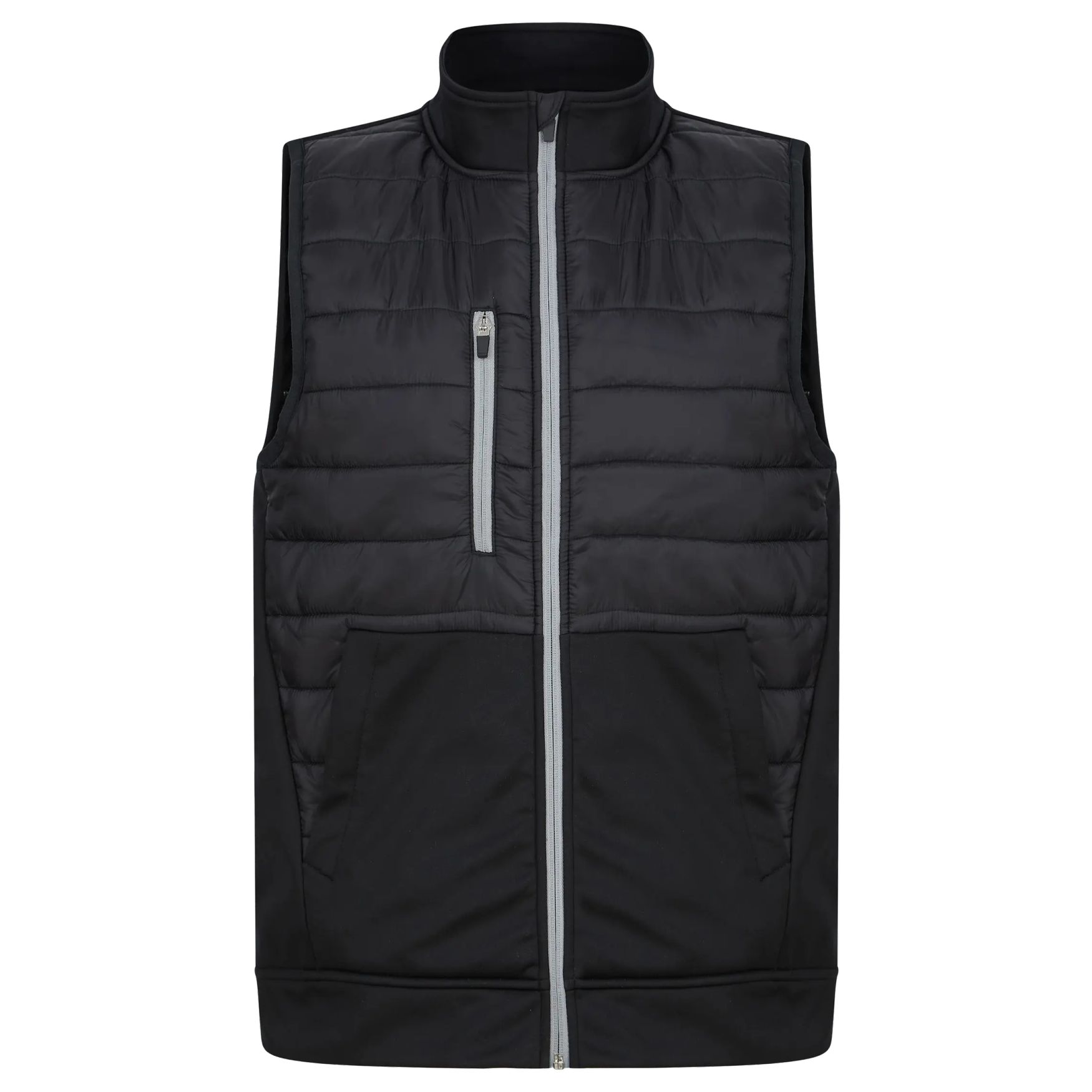 Unisex padded sports gilet to bodywarmer z dwóch materiałów z pikowanym korpusem i wstawkami softshell po bokach, na plecach i w kieszeniach. Kieszeń typu kangurka i kieszeń na piersi. Odpinana metka. Skład: 100% poliester pongee.