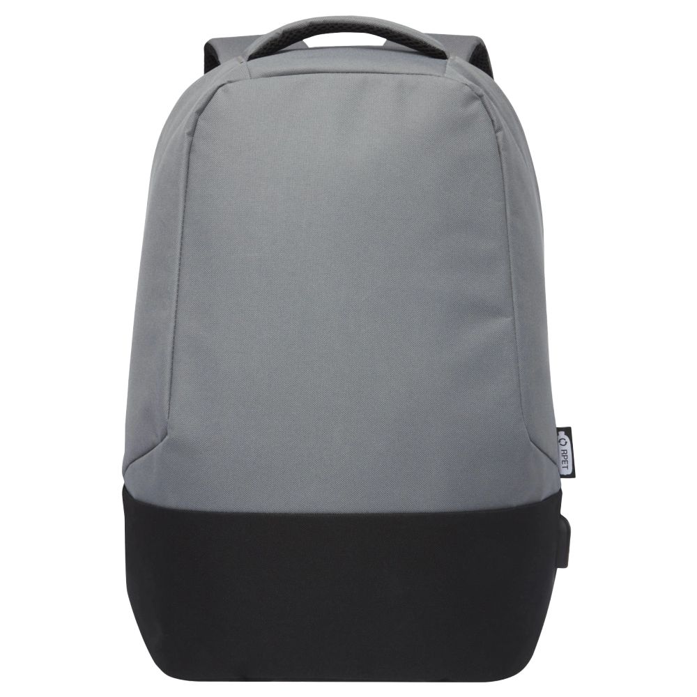 Ten przechowywacz z RPET posiada główne przedziały z organizacją wewnętrzną, podkładkę na laptop 15", oraz dwa przedziały z ochroną RFID. Jest wyposażony w port USB do ładowania urządzeń i posiada paski oraz pas z podkładką, ukrytą kieszeń, uchwyt oraz pas do wleczki. Wykonany z około 15 butelek plastikowych, ten przechowywacz ma wymiary 45 x 35 x 14 cm i składa się w 100% z poliestru recyklingowanego. Ten przechowywacz jest personalizowany poprzez haft, aby stworzyć unikalny wizerunek marki.