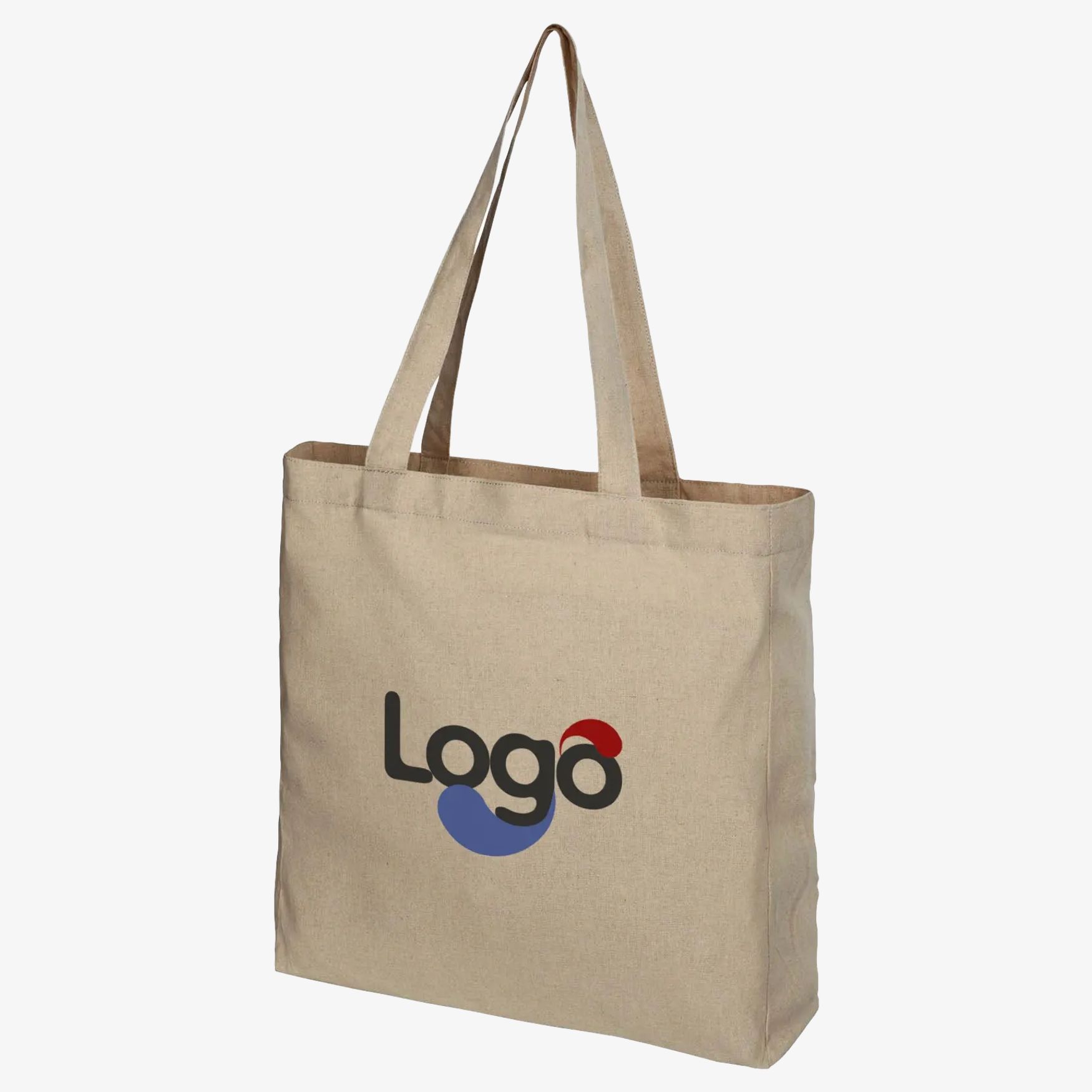 Torba zakupowa z mieszanki bawełny i poliestru recyklingowego. Bawełna recyklingowa jest wytwarzana z odpadów przedkonsumpcyjnych generowanych przez fabryki tekstylne podczas procesu cięcia. Torba z fałdami i dużym głównym przedziałem. Dwa uchwyty o wysokości 31 cm. Wytrzymałość na obciążenia do 10 kg. Mogą wystąpić niewielkie różnice w kolorze produktu ze względu na naturę procesu produkcji. Wymiary: 38 x 8,5 x 41 cm. Skład: 40% bawełny recyklingowej i 60% poliestru recyklingowego. Torba zakupowa może być personalizowana za pomocą swojego logo lub wizualu dla skutecznej komunikacji marki.