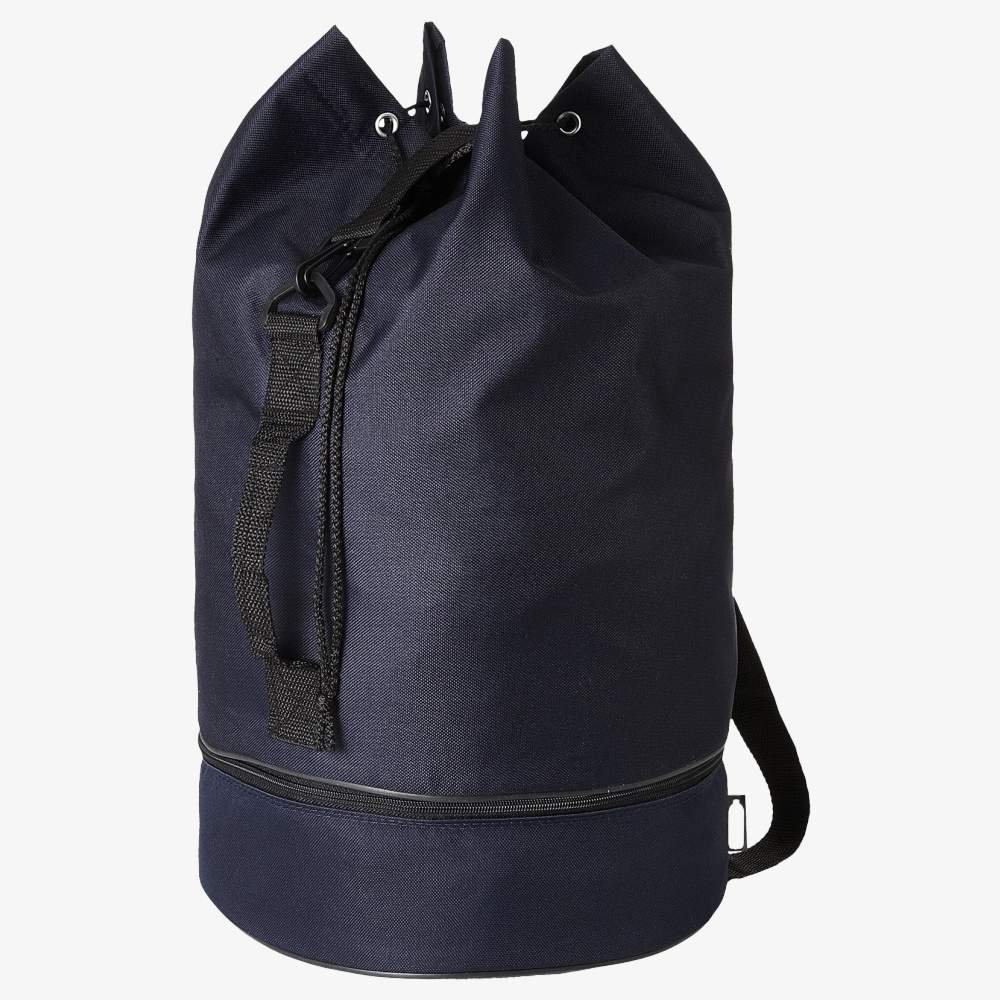 Morski plecak odporny na wodę, wykonany z recyklingu plastiku PET. Zapewnia duży główny przedział o pojemności 35 litrów z zamknięciem na sznurek, boczny uchwyt do łatwego transportu i regulowany ramię dla wygodnego noszenia. Odrębny dolny przedział z zamek błyskawicznym pozwala na bezpieczne przechowywanie małych przedmiotów. Ten plecak jest idealny na podróże, aktywności na świeżym powietrzu lub jako torba sportowa. Jego wymiary to 48 x 28 cm i skład 100% recyklingu poliestru.